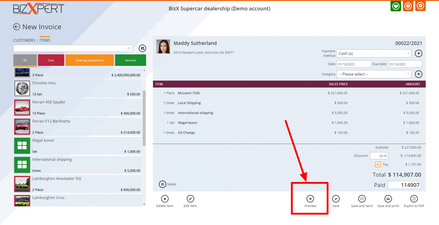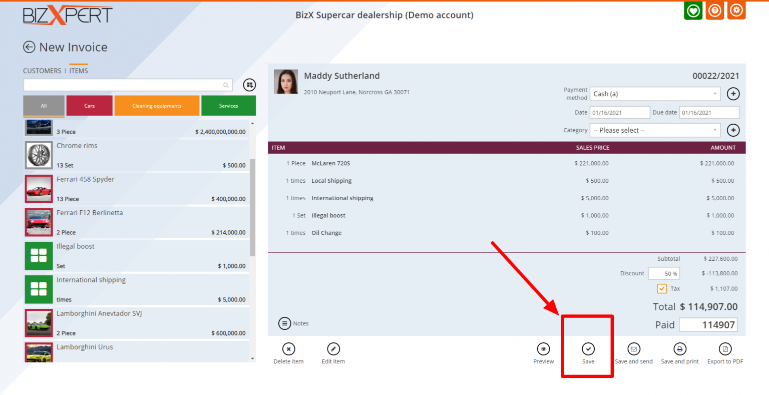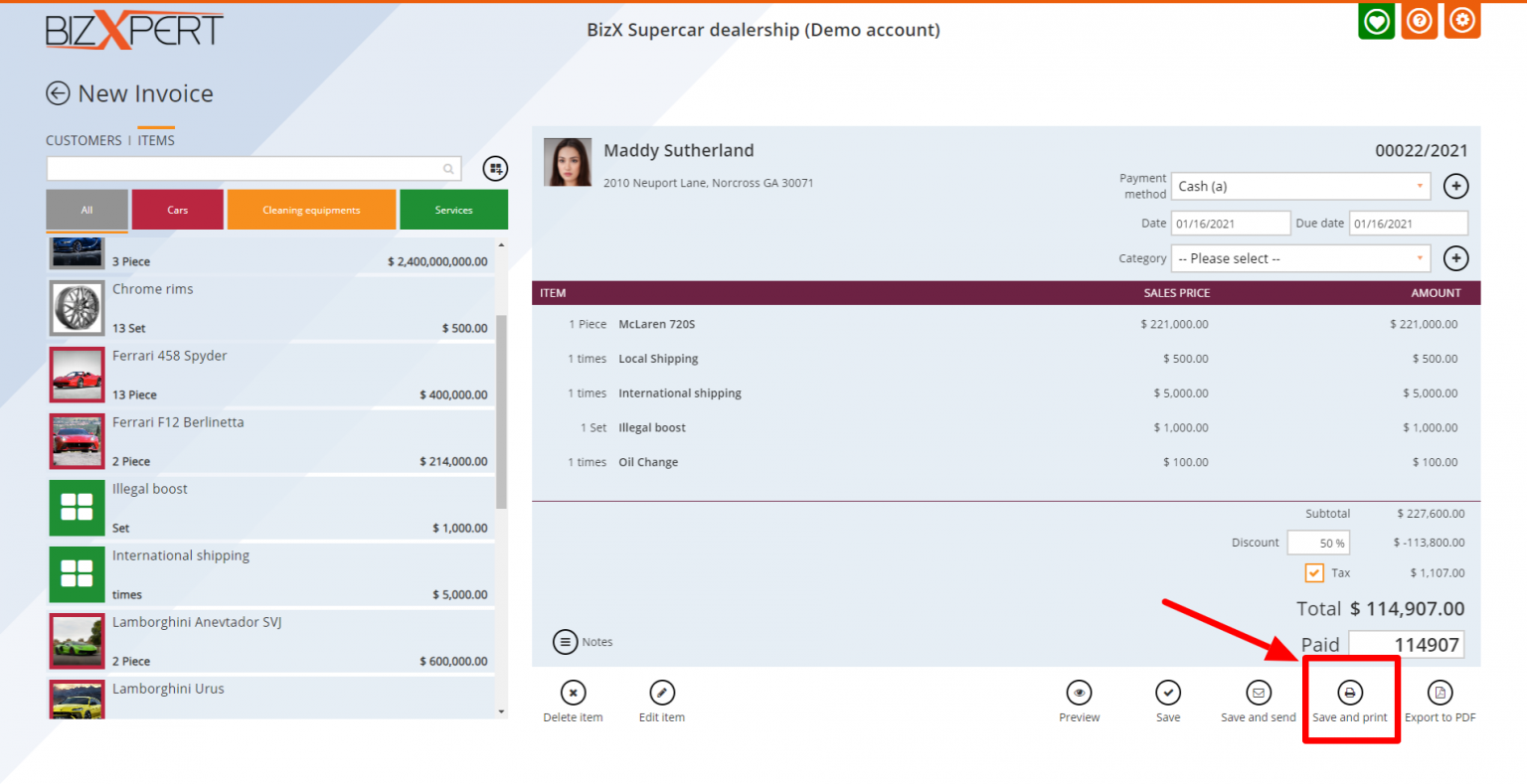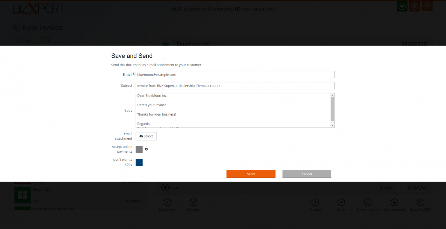 Check how your invoice will look before you send. If you find everything alright, you can quickly save, send or print to your customer