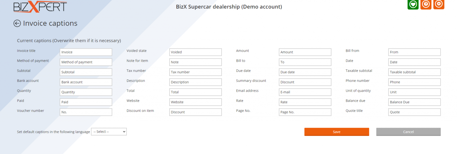 You can basically rewirte every caprtion of an invoice. How cool is that? Change the invoice language with a few clicks, or if you don't find yours, simply rewrite is for yourself. You need to to Create Tax Invoice instead of Invoice? No problem, you can do it here!