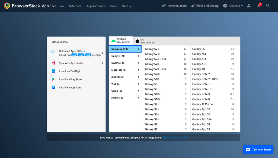 App Live is a cloud-based interactive mobile app testing platform that allows you to instantly test apps across real iOS and Android devices. Upload dev and published apps from multiple sources, debug with real-time logs, test native device features, and more.