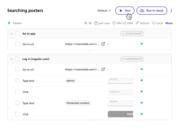 You can turn test steps into "Components" that are shared across multiple tests. Maintain hundreds of tests without worrying that you will have to spend half a day fixing them.