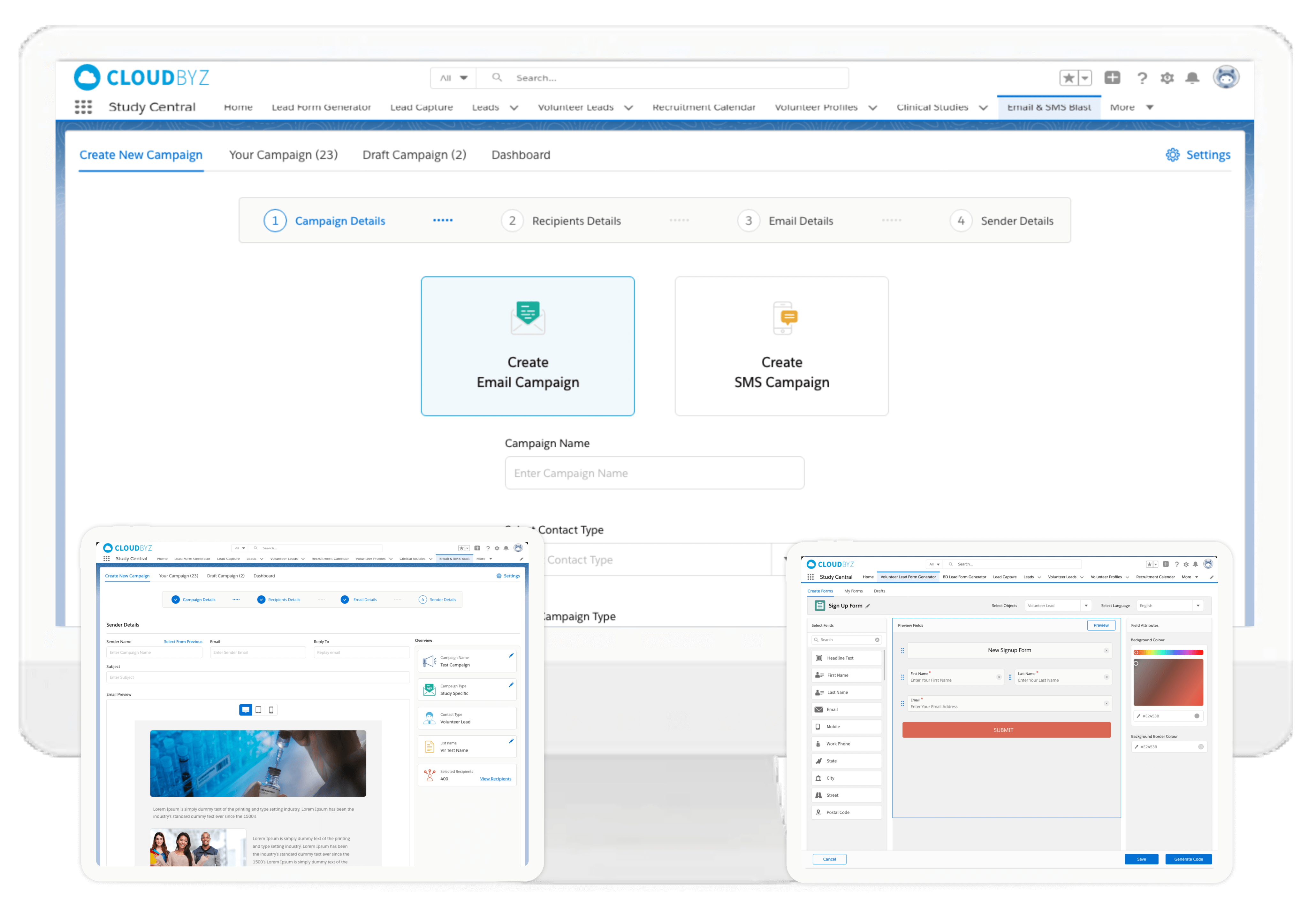 Cloudbyz facilitates virtual recruitment campaigns with pre-screening, patient education, referral management, mass email and SMS capabilities, customized and pre-built templates, etc. Analytical features support campaign metric calculations for rational decision making.