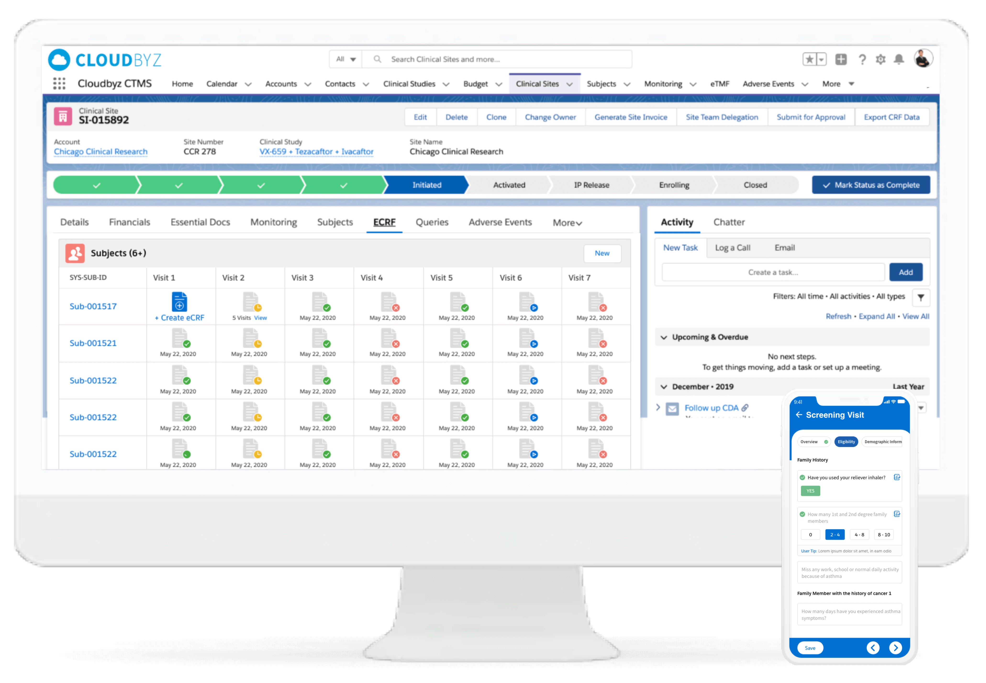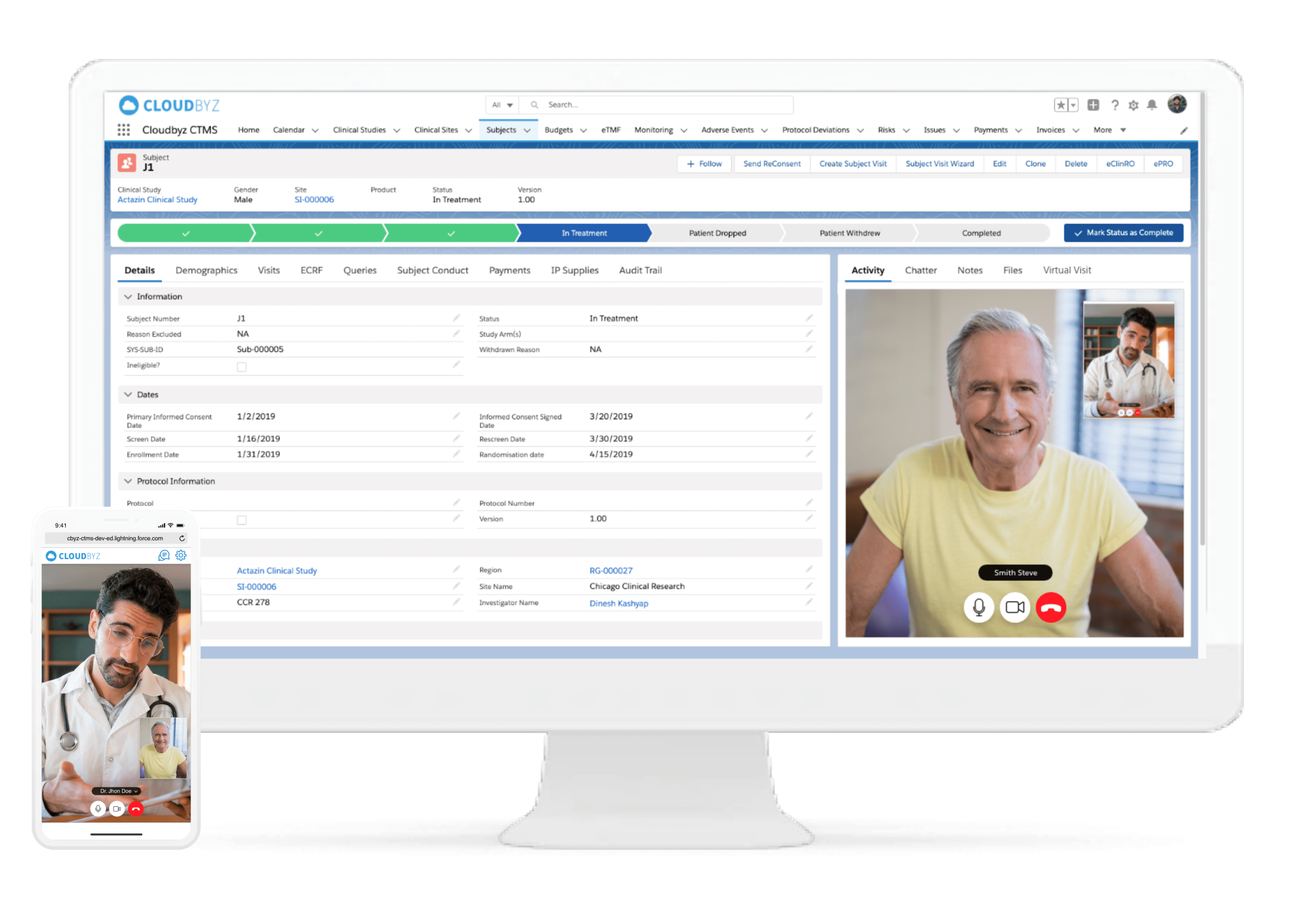 Cloudbyz pioneers in providing digital capabilities and clinical trial management solutions (CTMS) across the clinical trials lifecycle with patient centricity at its core. Our decentralized clinical trial (DCT) portfolio including smart features for eConsent, eCRF, EDC, ePRO, remote monitoring & SDV, eCOA, eDiary, virtual PR, eTMF, among others.