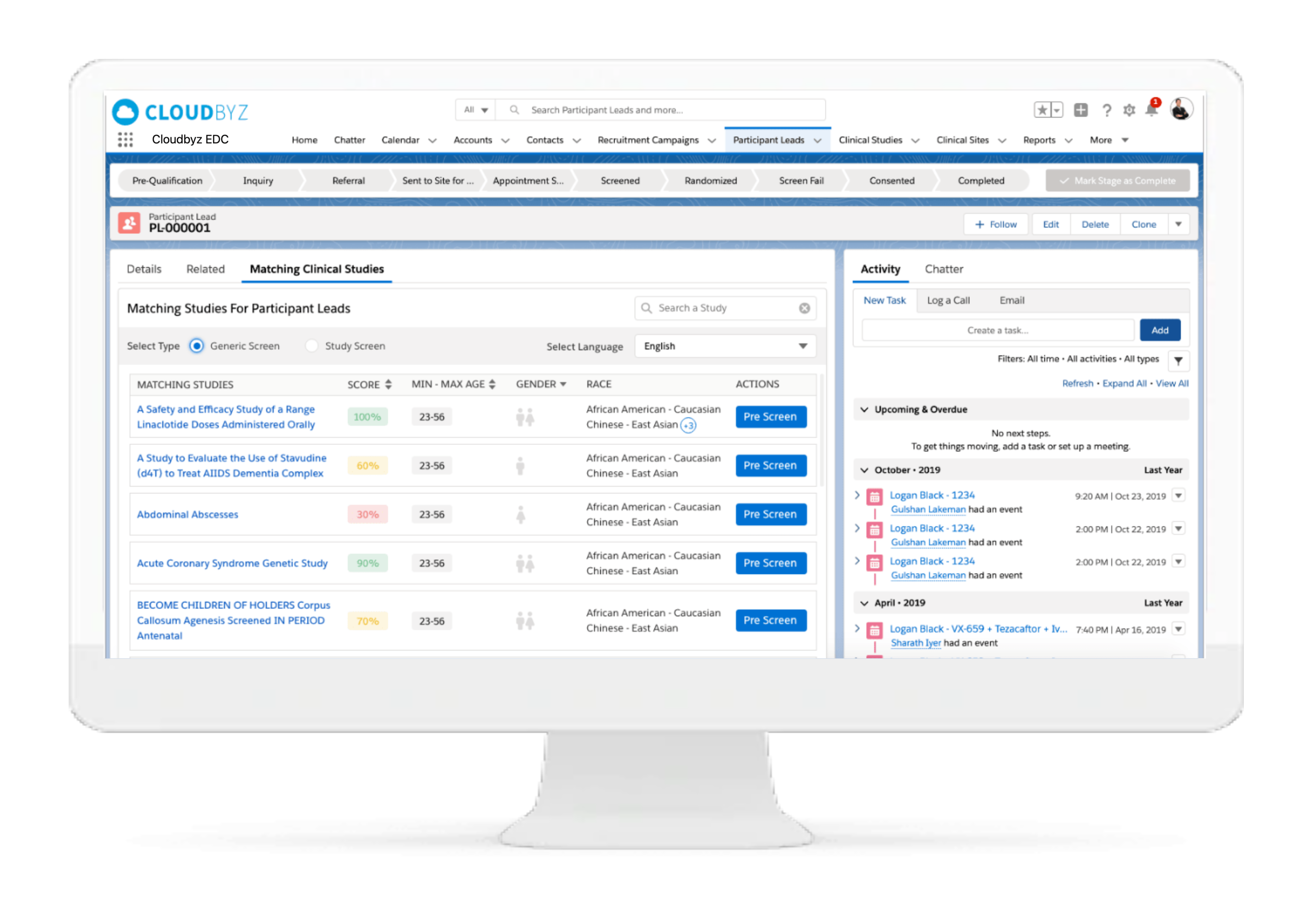 Cloudbyz EDC solution can be easily integrated with our patient recruitment solution which delivers end-to-end remote patient recruitment. The solution offers features such as study listing, patient portal, pre-screening, templates, eligibility testing and appointment scheduling.