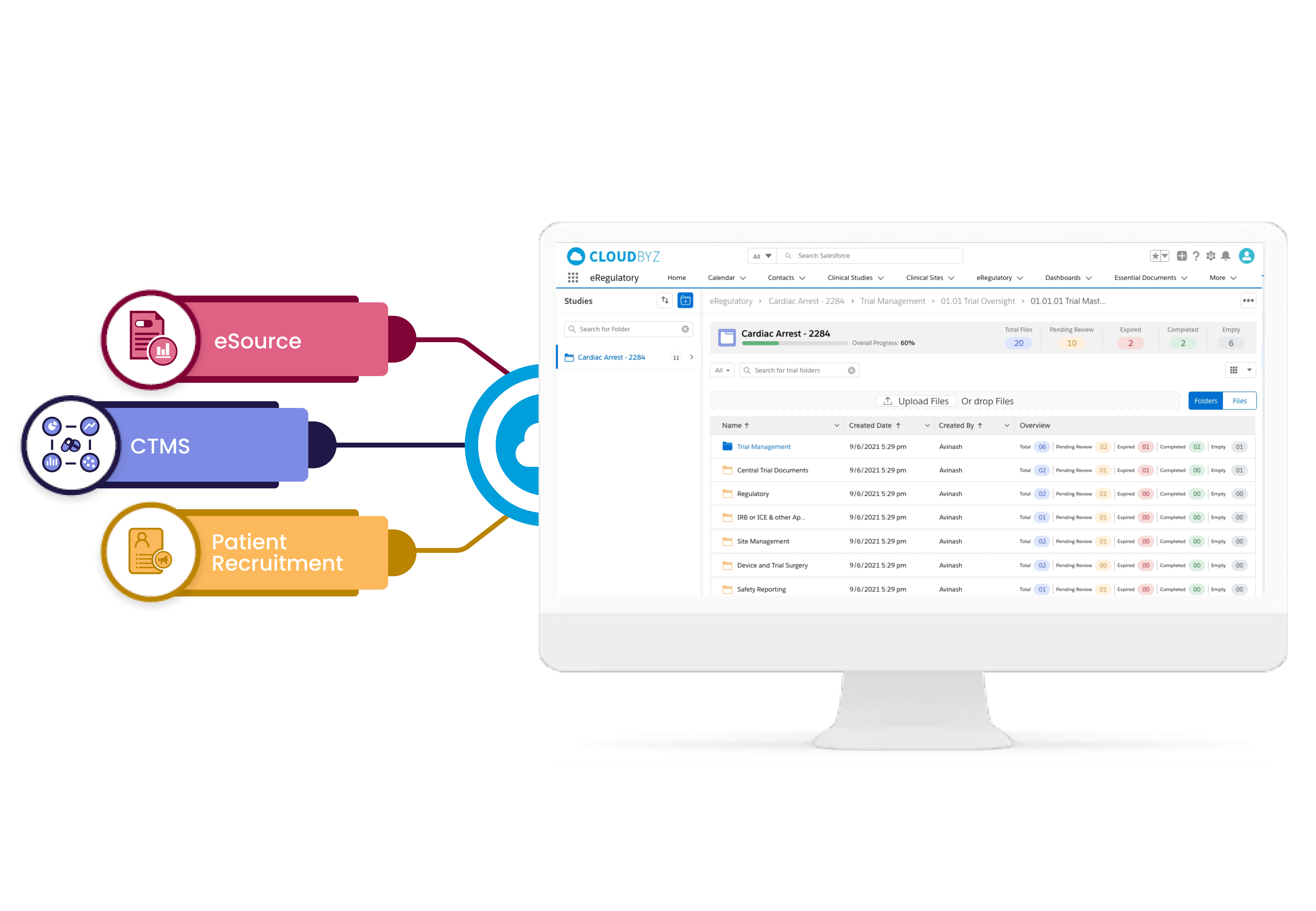 Cloudbyz eRegulatory solution is integrated with eSource, CTMS and Patient Recruitment capabilities and enables seamless collaboration across teams and helps to achieve efficiency.