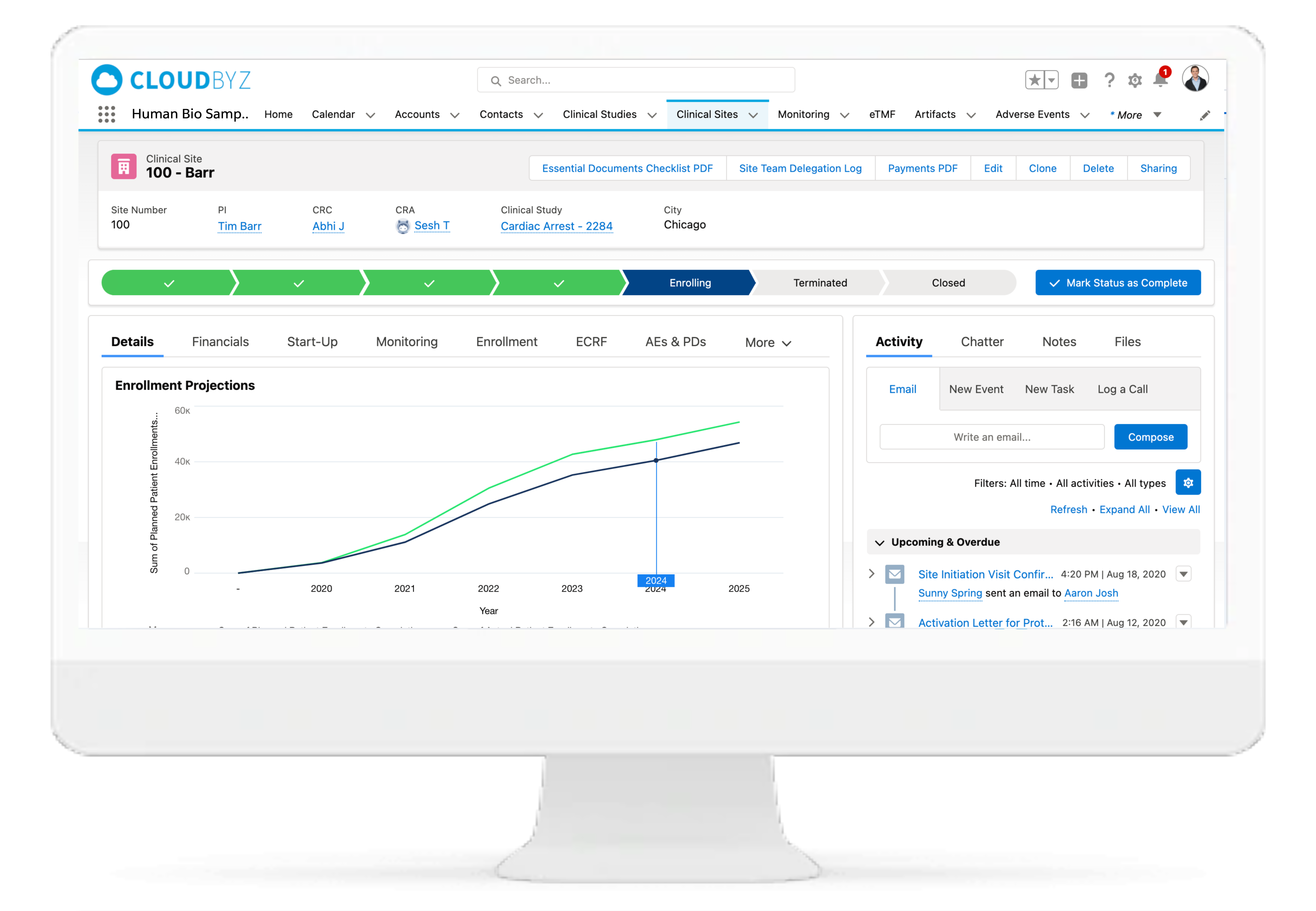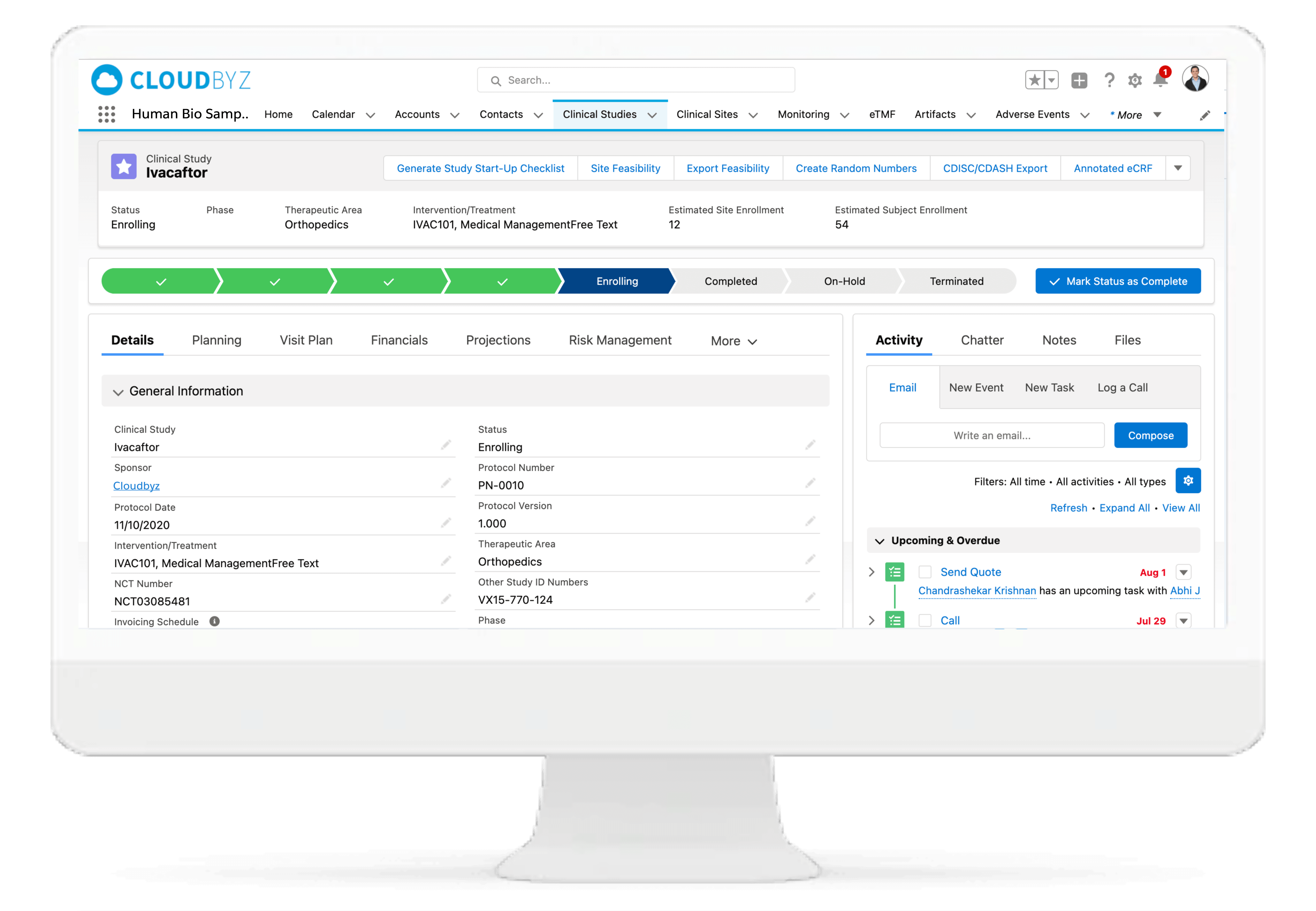 Cloudbyz Investigator/site Portal solution provides a single platform to deliver content and services to clinical research sites. The features include Kit ordering, Kit tracking, Inventory Management, Automatic orders, threshold monitoring, queries, and data clarification form resolution. receive results and track sample testing and chain of custody. Collaborate with labs, monitors, CROs, Sponsors and other vendors, all from a single location.