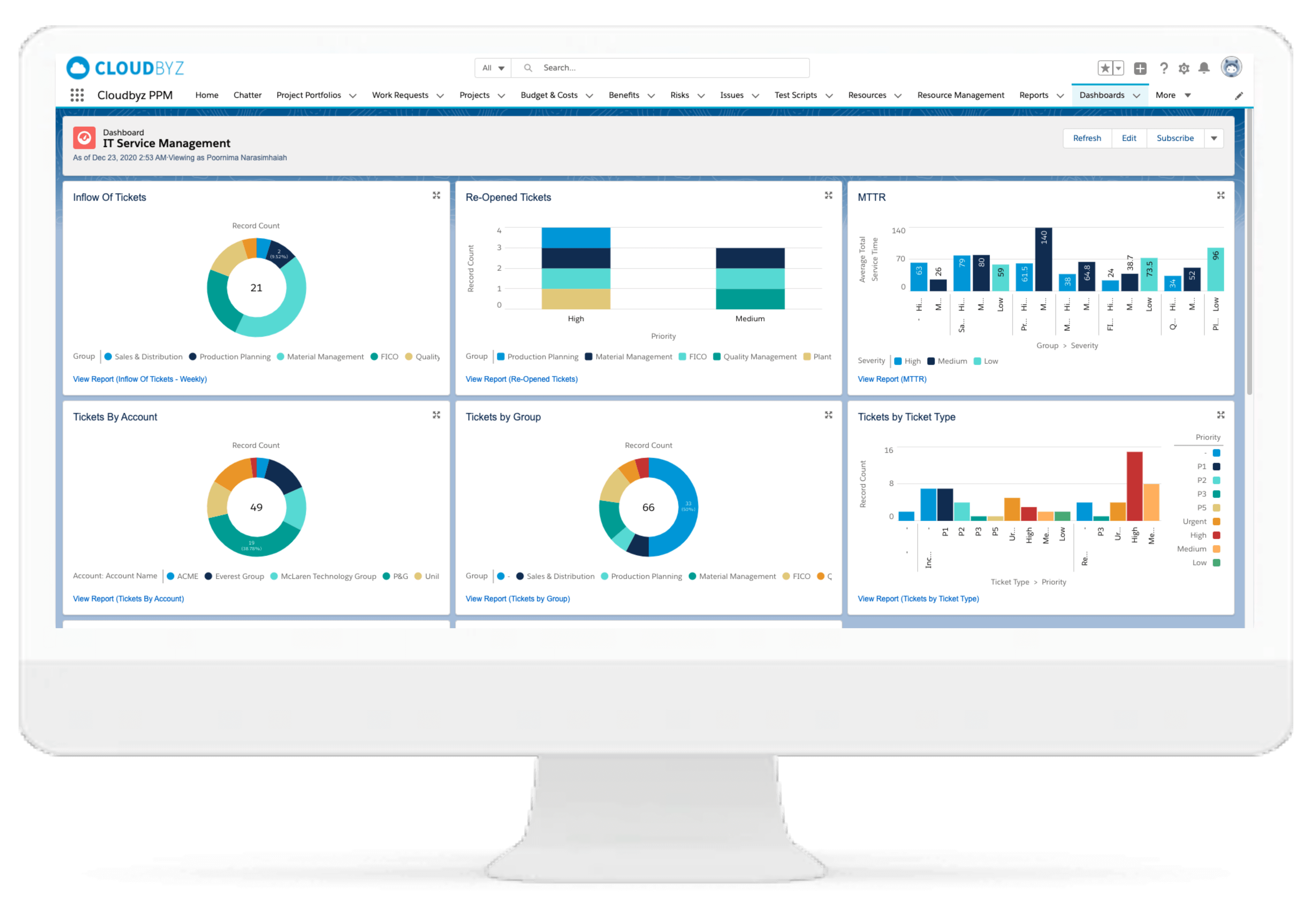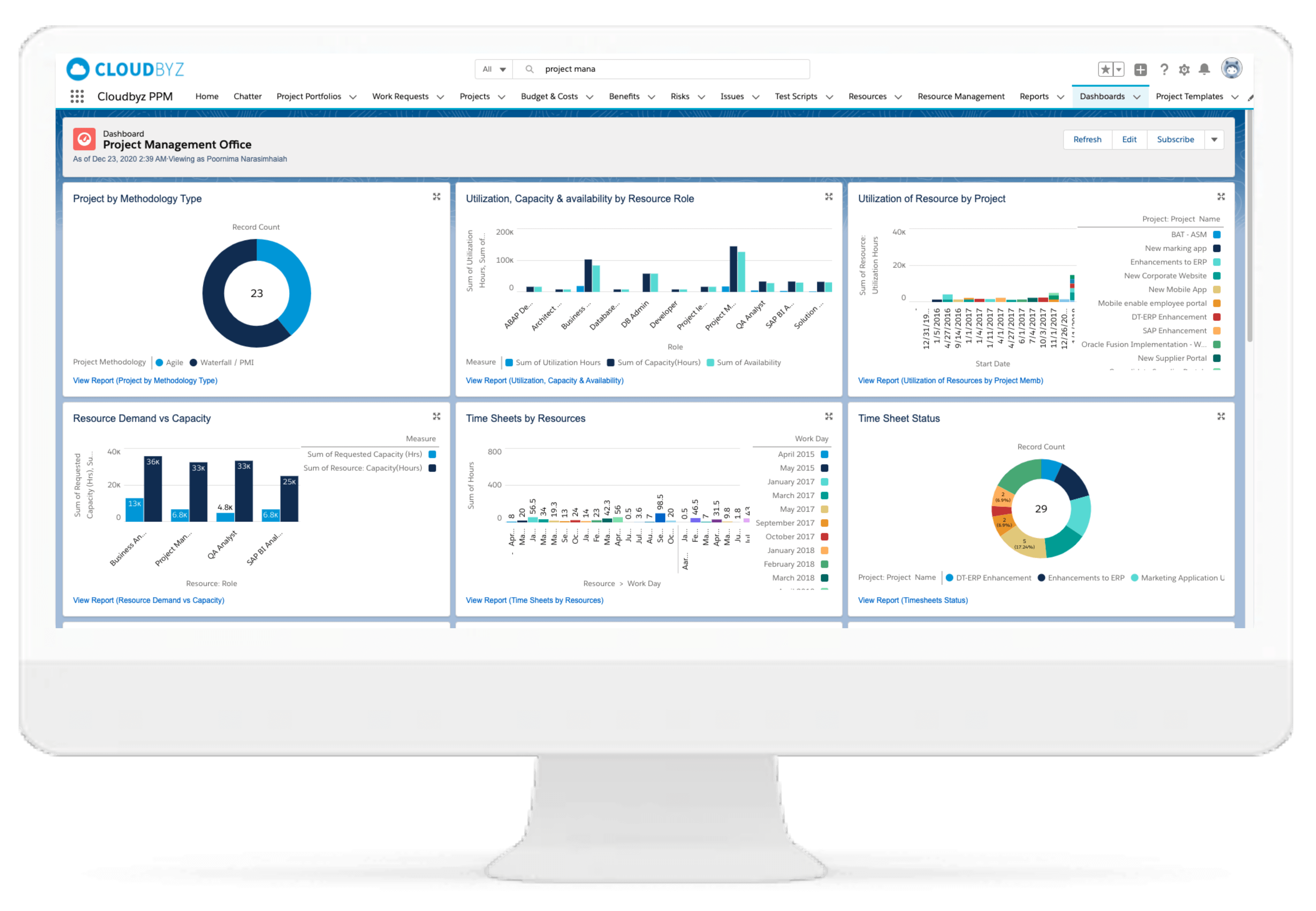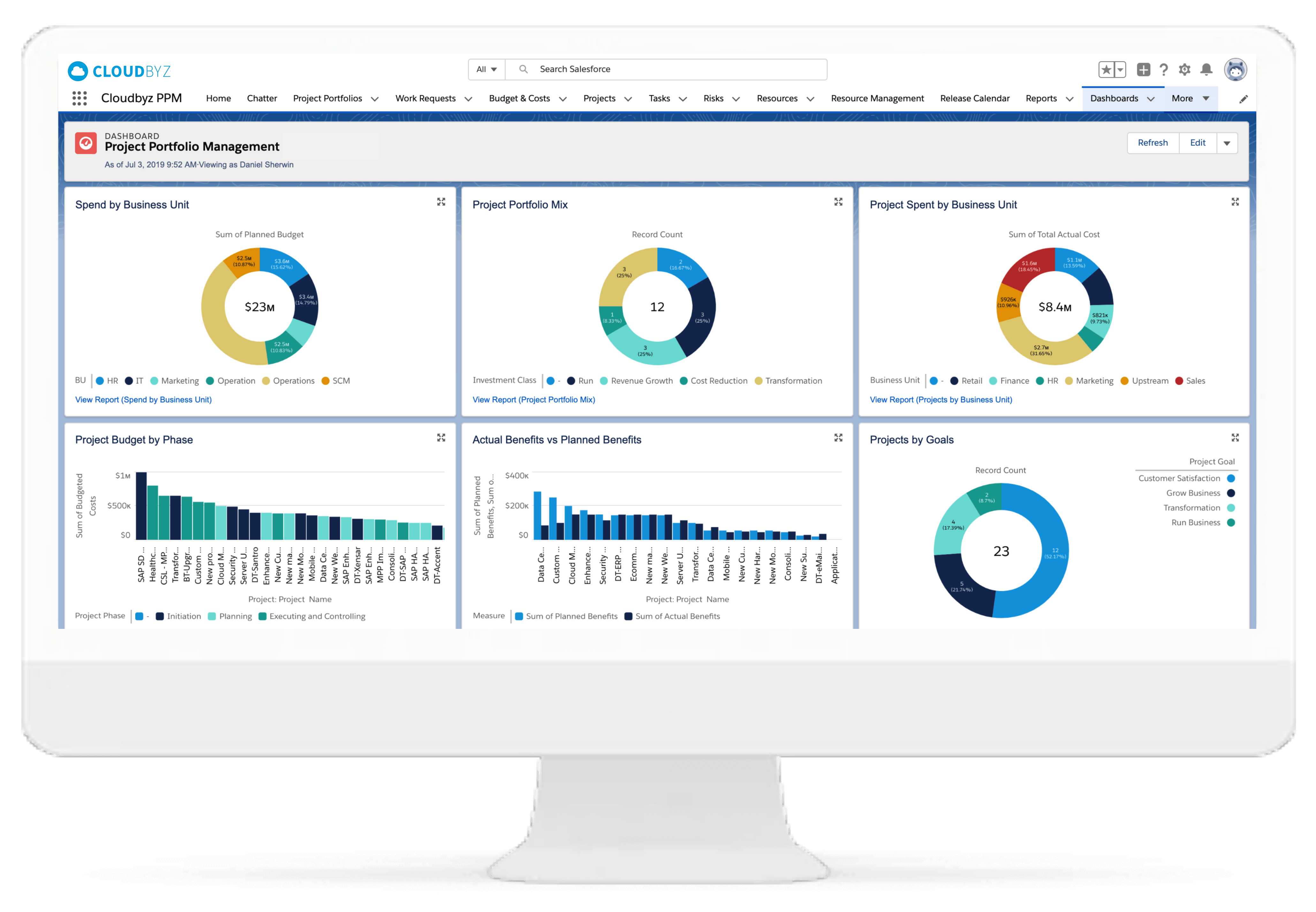 Organizations that don’t have tightly integrated PPM, Financials, Resources, ALM and APM typically collect data through meetings, e-mails and other manual methods, then copy or paste it into the PPM system. This approach is slow, error-prone and unnecessary. With the Cloudbyz solution, real-time visibility gives stakeholders reliable information about the status of projects in motion and allows executives to confidently allocate resources to future development projects.
