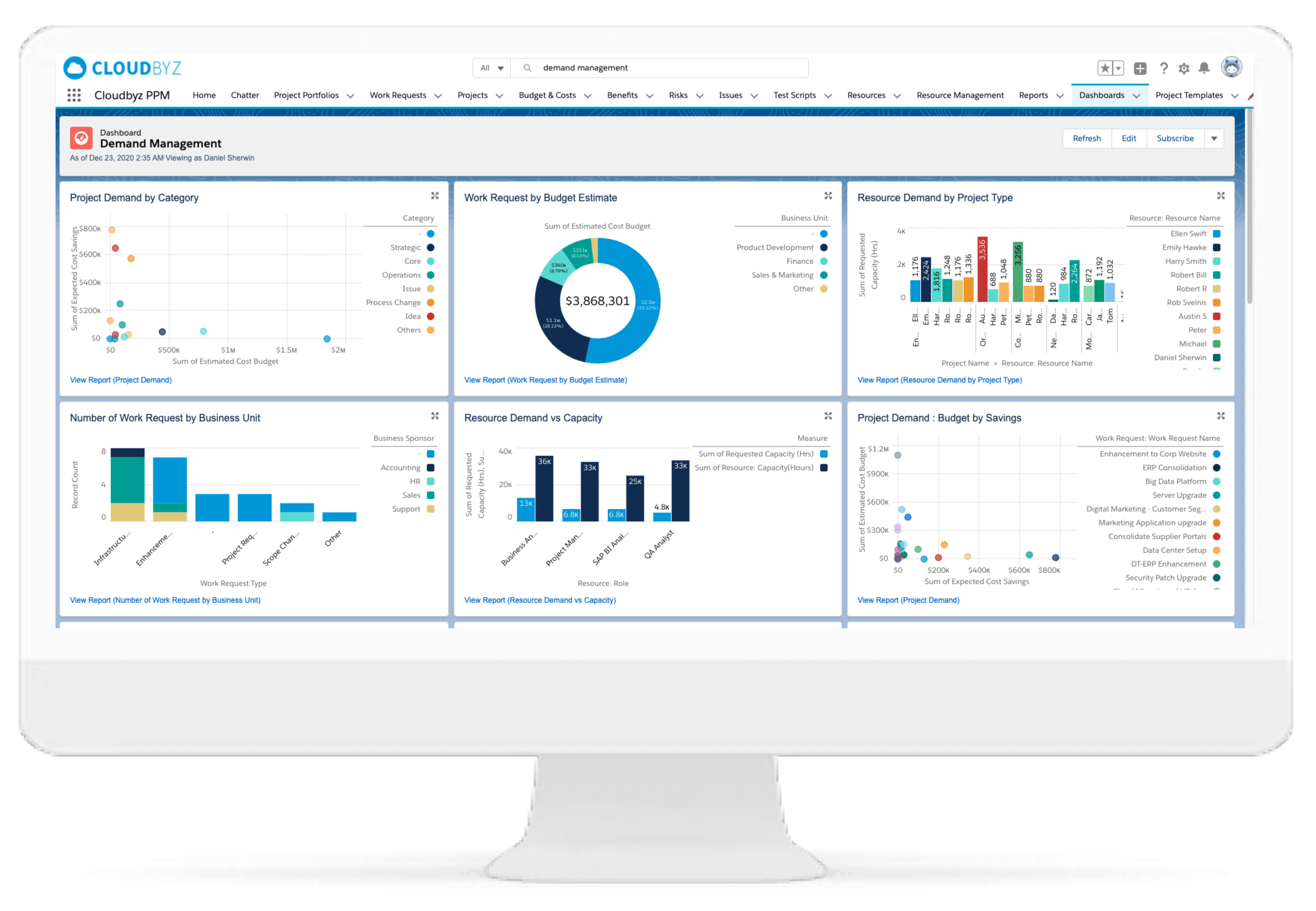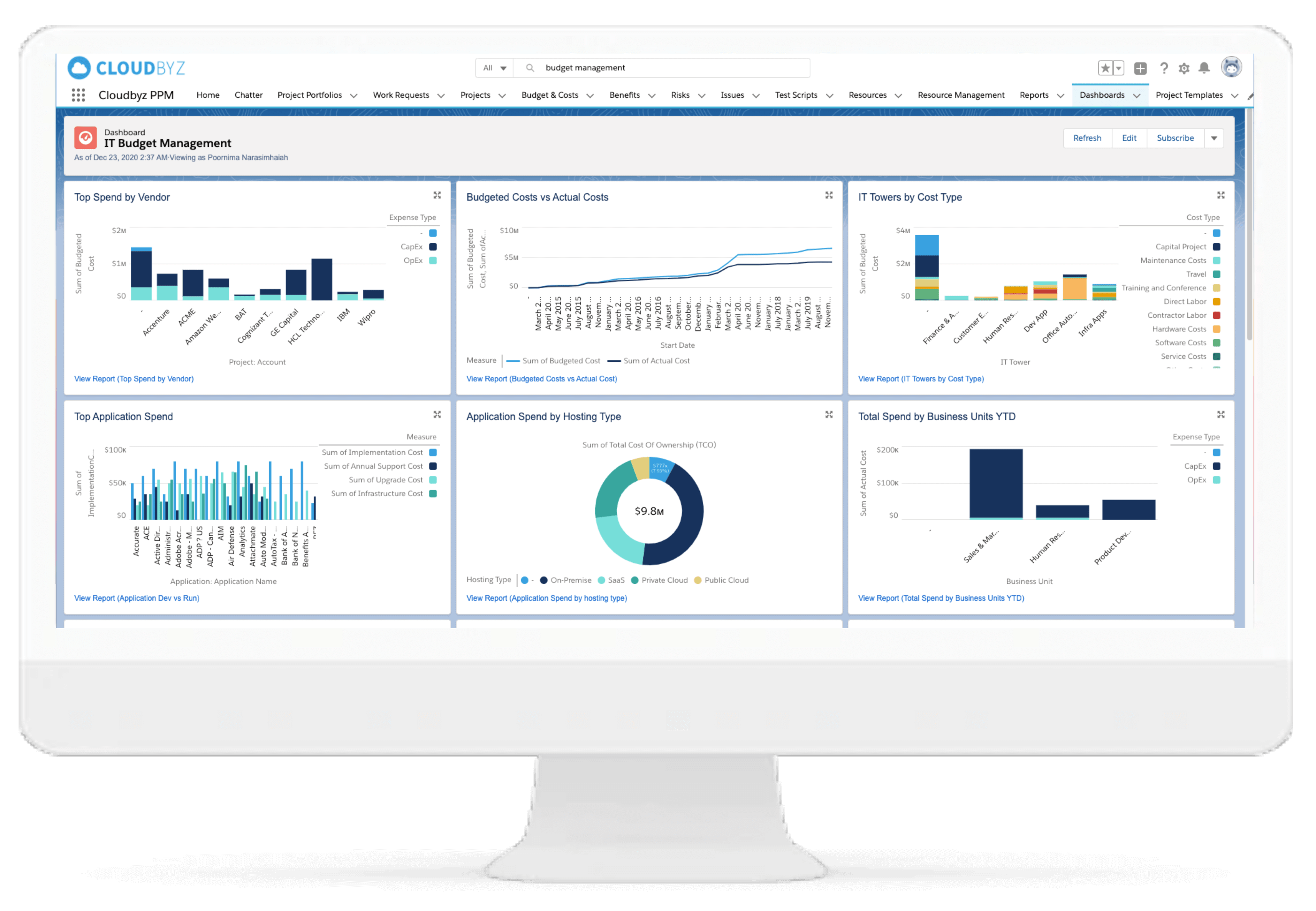 Cloudbyz ITBM provides real-time visibility into the current state of organizational initiatives, resources and spending through the centralized collection of data from multiple sources and perspectives. Integration across multiple business and IT process domains through PPM functions provides multi-dimensional views of this data for better visibility and understanding of resource supply versus project (and other work) demand in IT and other project environments. Cloudbyz ITBM also enables executive action and decision making