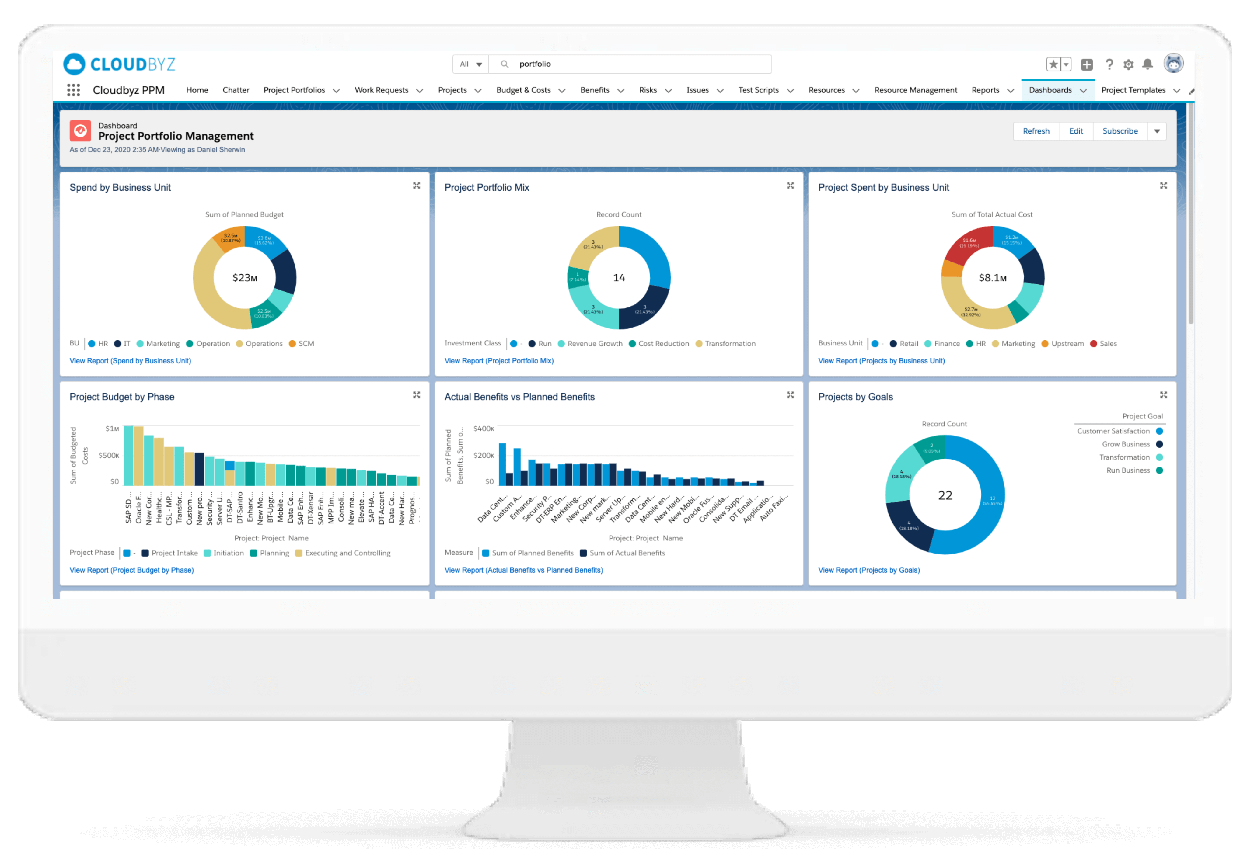 Cloudbyz PPM solution helps organizations gain visibility, insight, and control across all work. The solution provides the tools to properly align resources, projects and goals; optimizing business strategy and performance. Cloudbyz PPM enhances decision-making, maximizes resource utilization and increases operational efficiency.