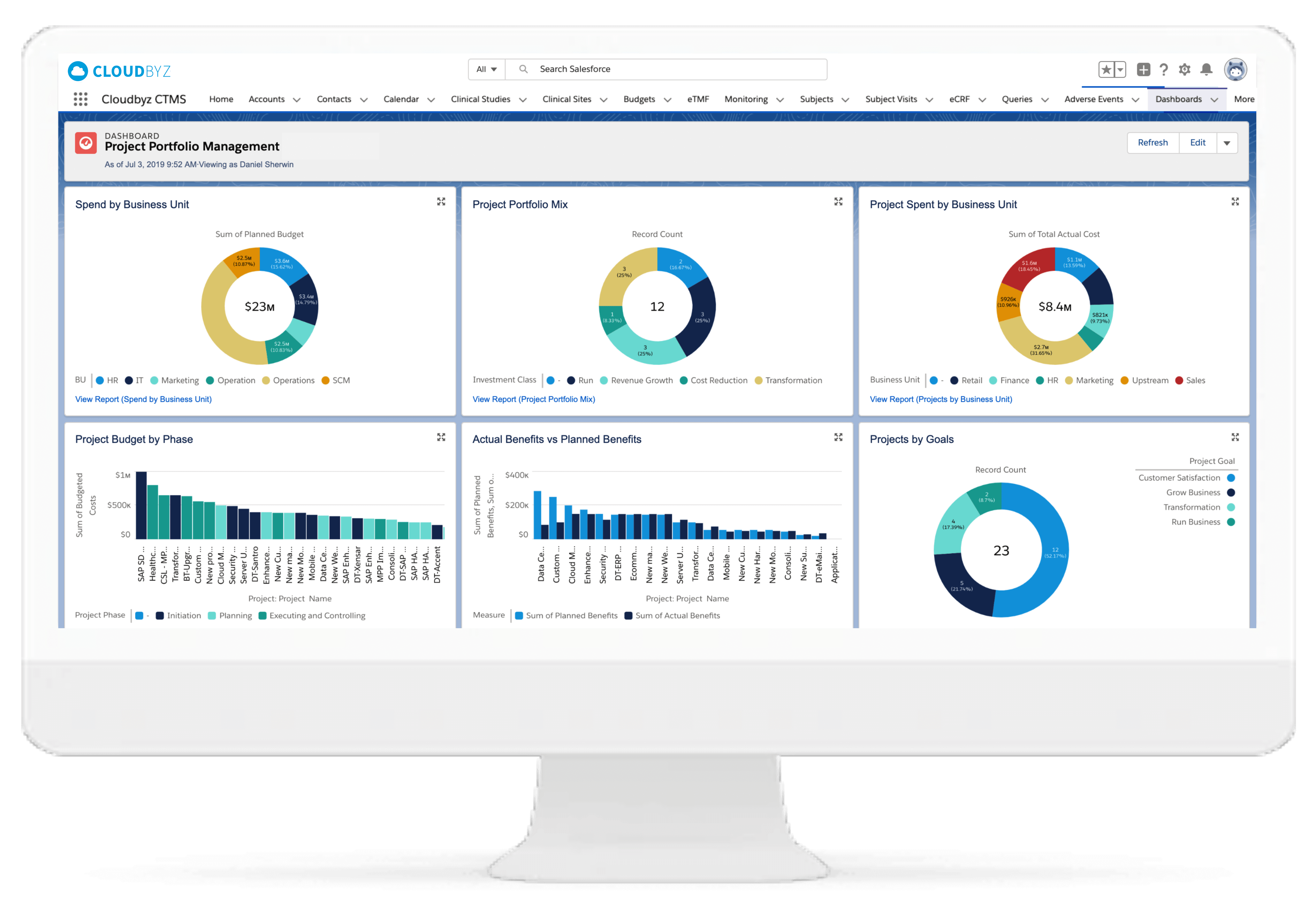 Cloudbyz R&D PPM provides real-time visibility into the current state of organizational initiatives, resources and spending through the centralized collection of data from multiple sources and perspectives. Integration across multiple research and development process domains through PPM functions provides multi-dimensional views of this data for better visibility and understanding of resource supply versus demand in research & Development. Cloudbyz R&D PPM also enables executive action and decision making.