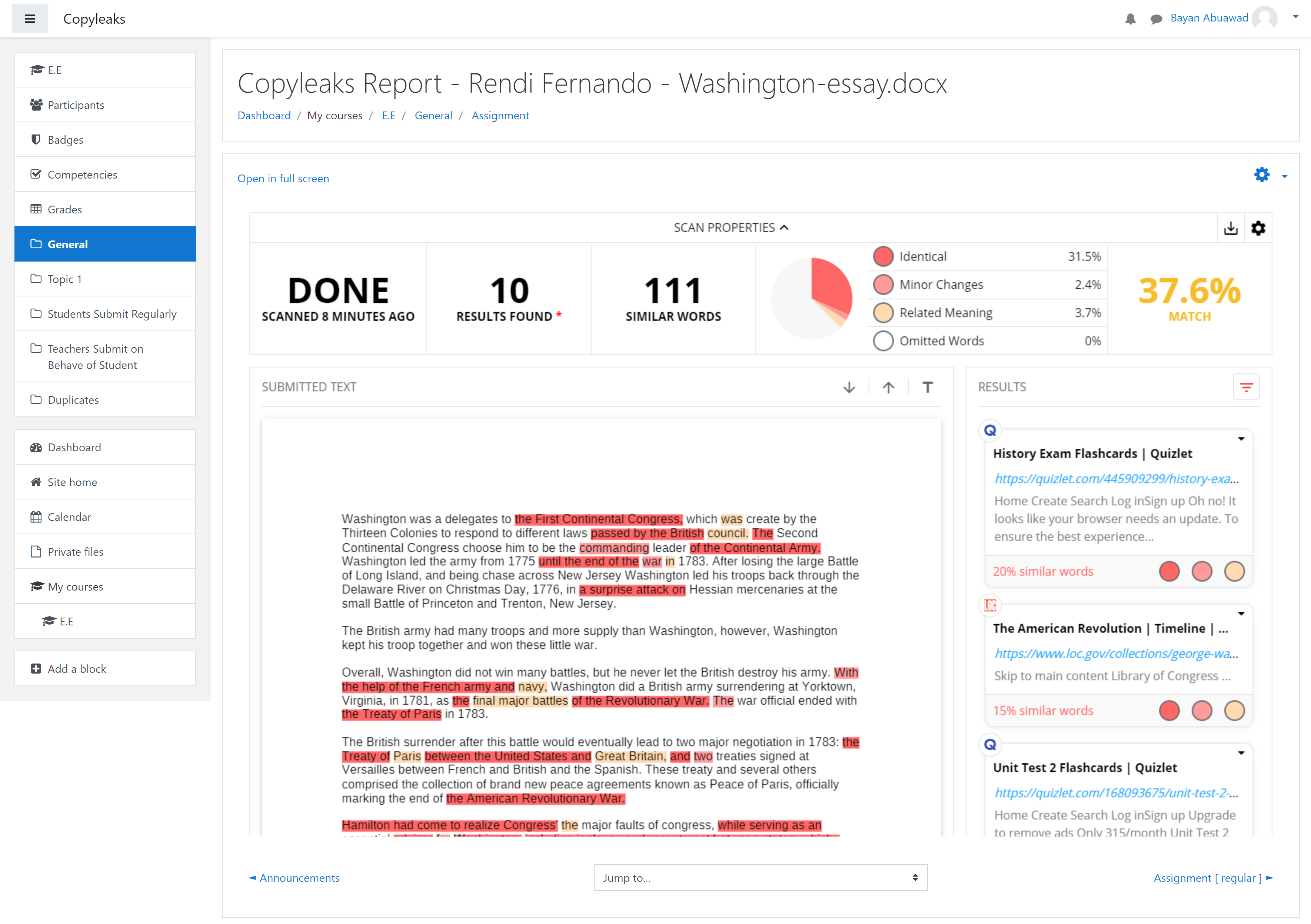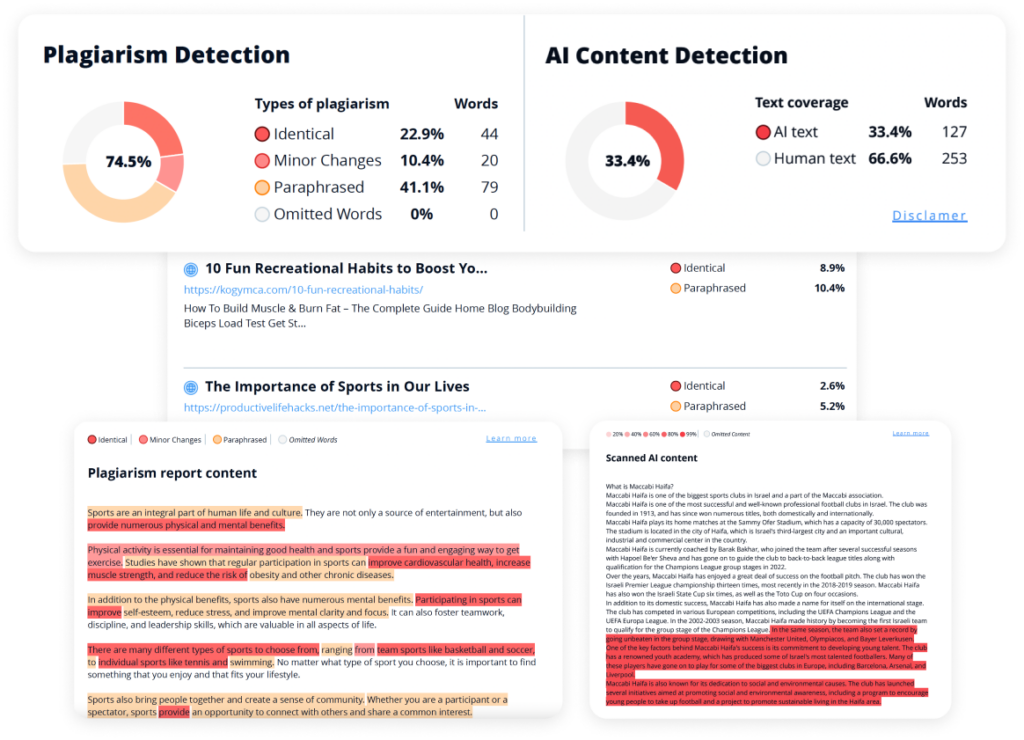 Plus, go beyond word-for-word plagiarism detection with a platform that can detect AI-generated text, multiple forms of paraphrasing, source code plagiarism, and image-based text plagiarism. With every scan, you get a secure, customized, detailed Similarity Report that you can share with your team.