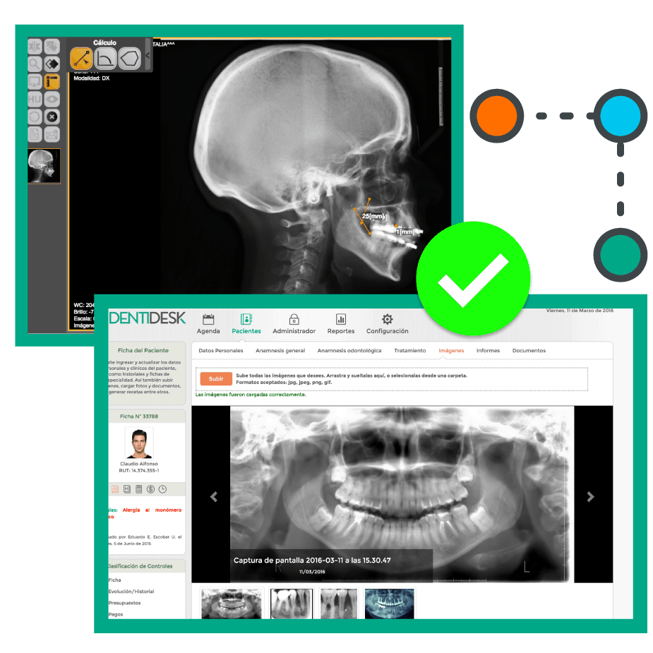 DENTIDESK allows you to store in an unlimited way, pictures (photographs, x-rays) of the patient’s treatment, which you can get from a HTML5 viewer from the scanner’s source.