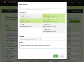 eTherapyDocs provides unlimited use of our integrated HIPAA Compliant mail system. This mail system allows you to email patient document to patients, caregivers, and physicians. Additionally, eTherapyDocs can provide options for secure faxing directly from within the system.