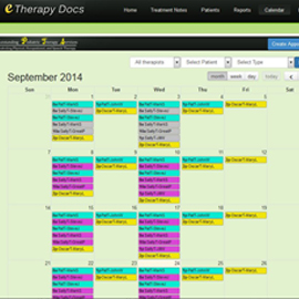 eTherapyDocs offers a visual indication for scheduled appointments missing their treatment notes. This enables therapists to ensure they keep up with writing treatment notes, and allows therapists to easily create notes simply by clicking a calendar appointment. Administrators and Billers can visually see missing treatment notes in order to help facilitate the completion of those notes so they can be billed.