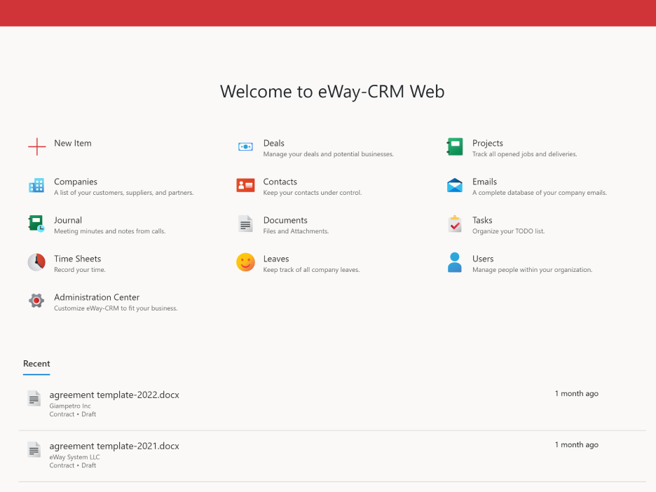 - We’ve already implemented the most requested modules – Contacts, Companies, Deals, Projects, Journals, Emails (read only), Documents, Tasks, Timesheets, Leaves and Users.