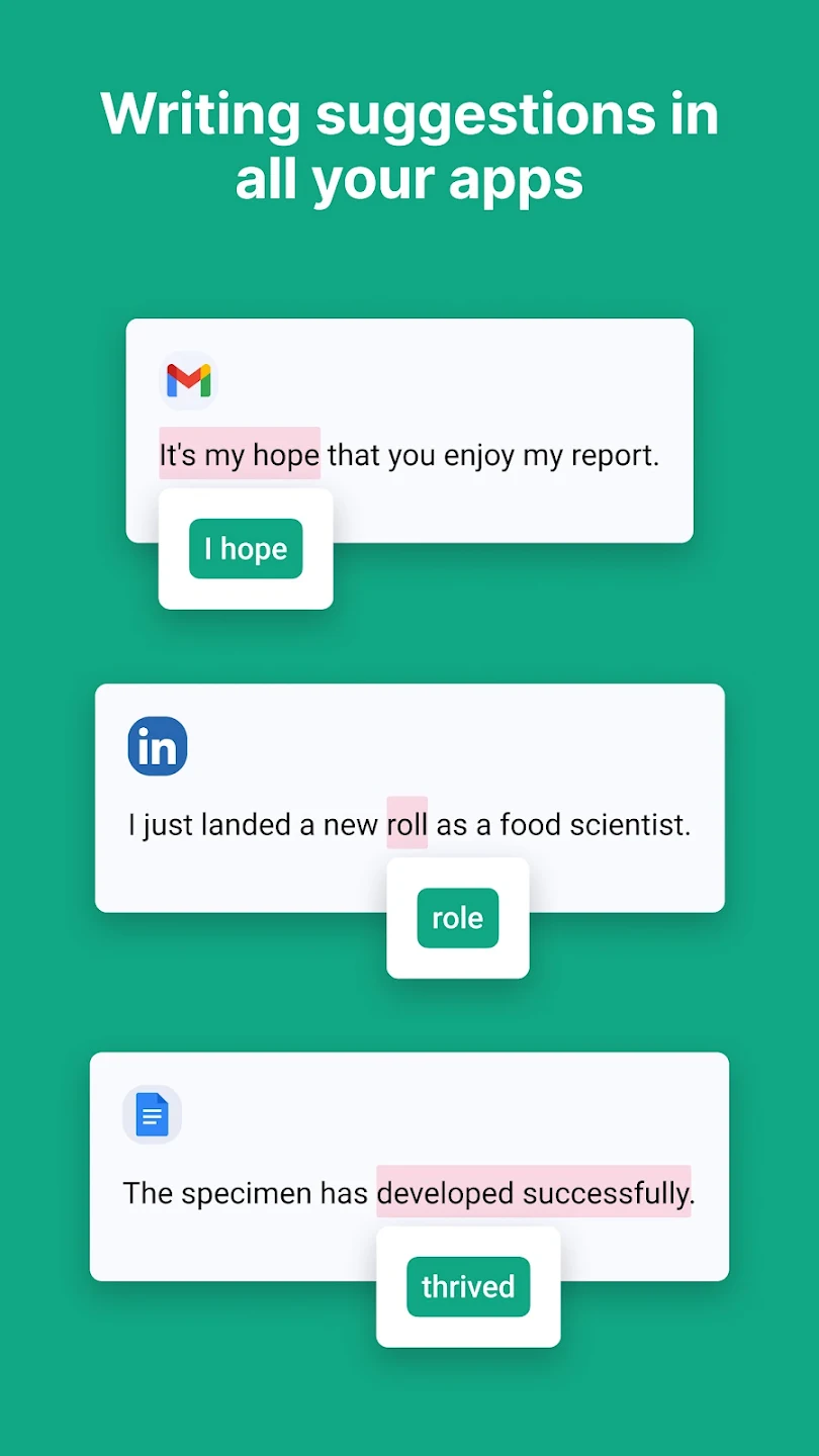 Grammarly team members use advanced machine learning to break new ground in natural language processing that analyzes written sentences to understand context and tone. Our newest product, GrammarlyGO, responsibly applies generative AI to help people quickly compose writing, rewrite paragraphs, draft replies to emails, and more with a prompt. It’s contextually aware and accounts for personal voice, offering relevant and personalized suggestions that respect user agency and authenticity. All Grammarly services are backed by enterprise-grade security and privacy safeguards, and work across the many apps and devices where writing happens.