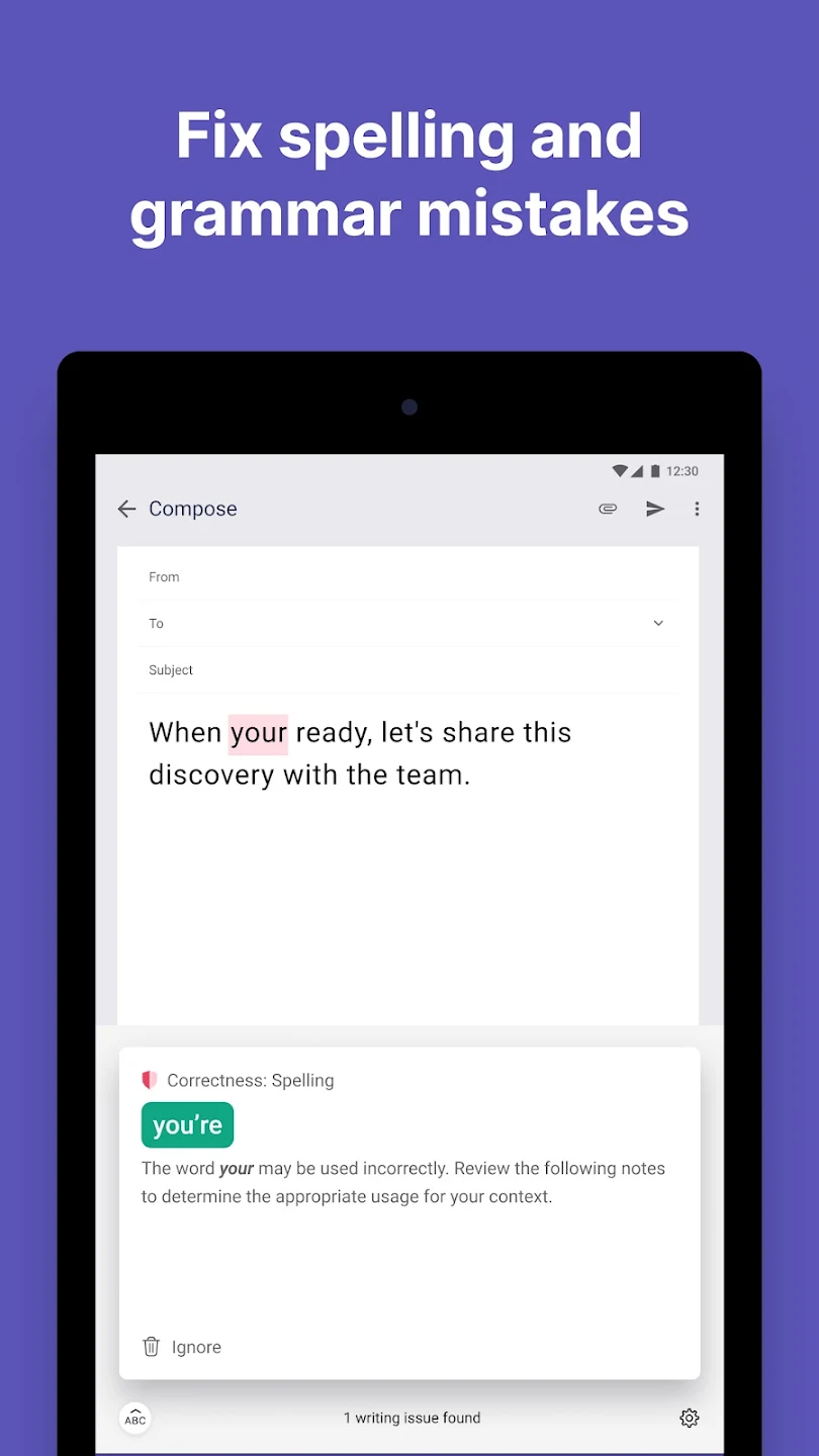 Apply instant corrections to grammar errors, misspelled words, and punctuation mistakes for polished writing.