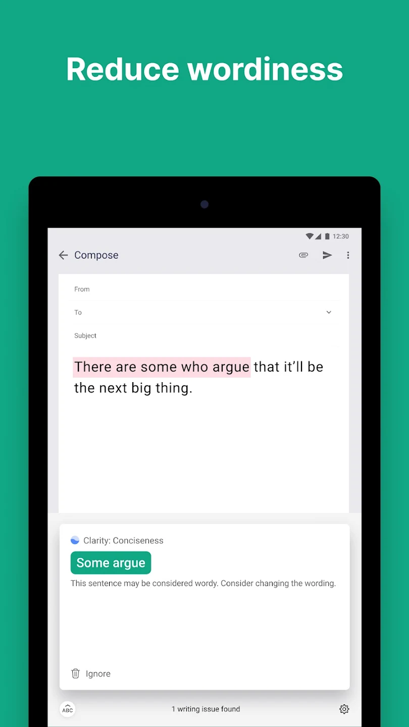 The plagiarism checker is part of a robust writing app that offers advanced feedback on writing mechanics like grammar and spelling as well as more complex stylistic issues like word choice, conciseness, tone, and more.