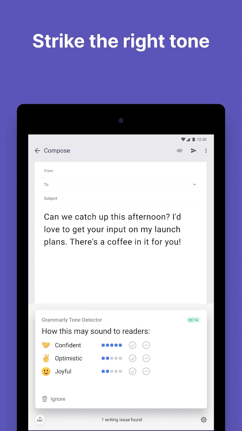 Make sure the tone and style of your paper matches the expectations of your instructor with Grammarly’s tone detector.