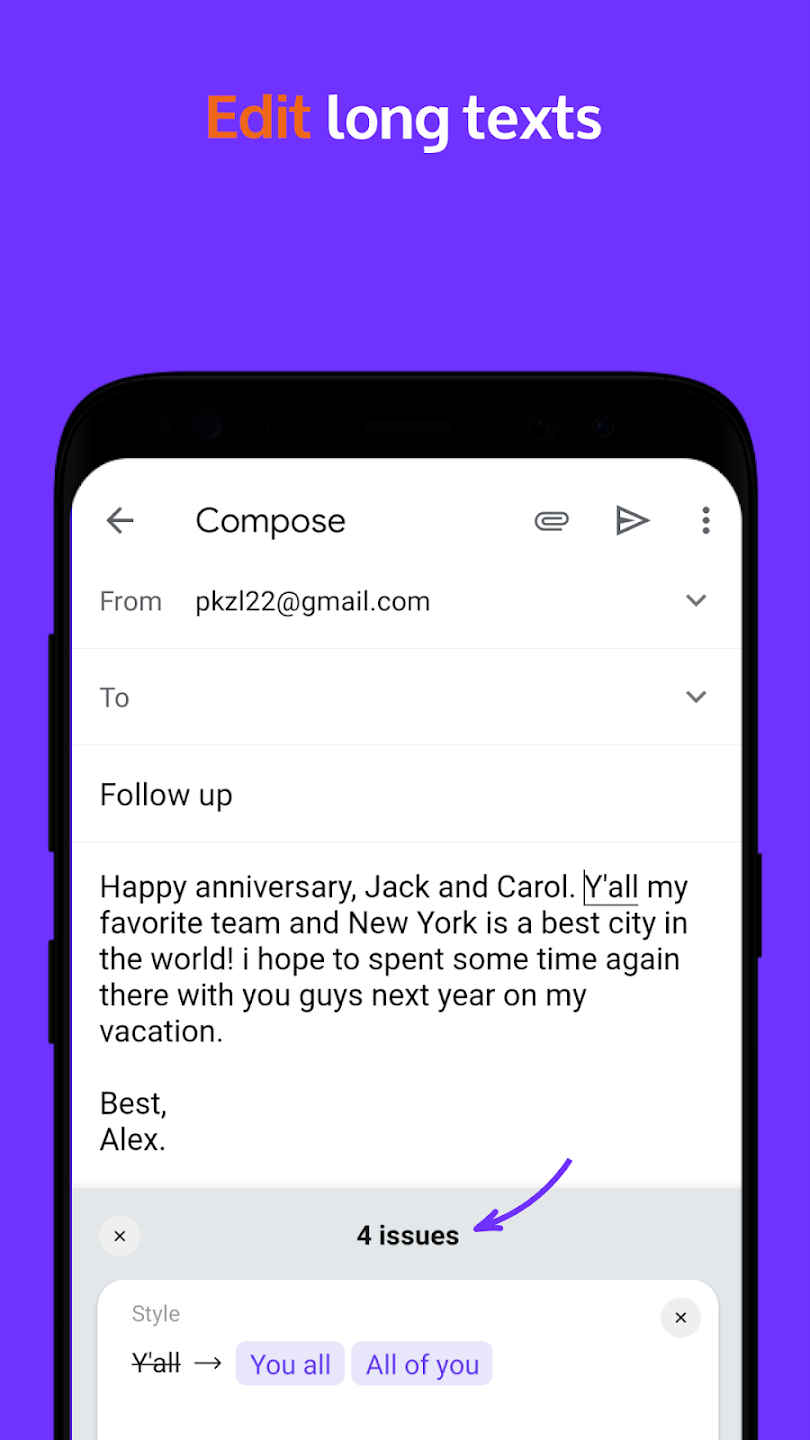 Linguix's grammar and punctuation checker can help you write with confidence, ensuring that your message is clear, concise, and professional.