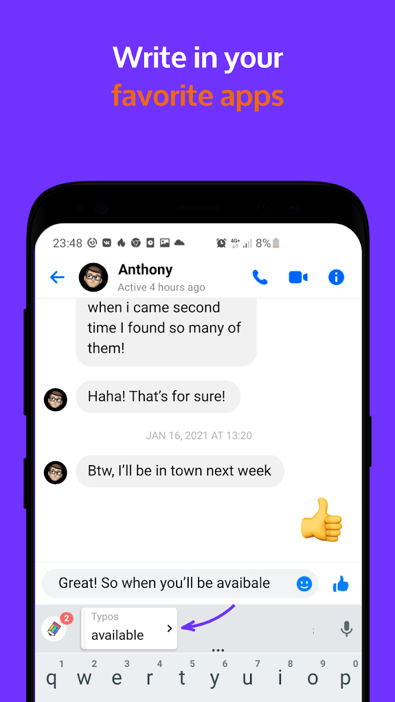 Linguix's spelling and grammar check feature is available online and our browser extensions work on Google Docs, Gmail, ChatGPT, and millions of other websites. Our spell check online tool is perfect for catching typos and other errors that can slip past you during the writing process. The spell tester can provide suggestions for correcting your mistakes, making it easier to polish your work.