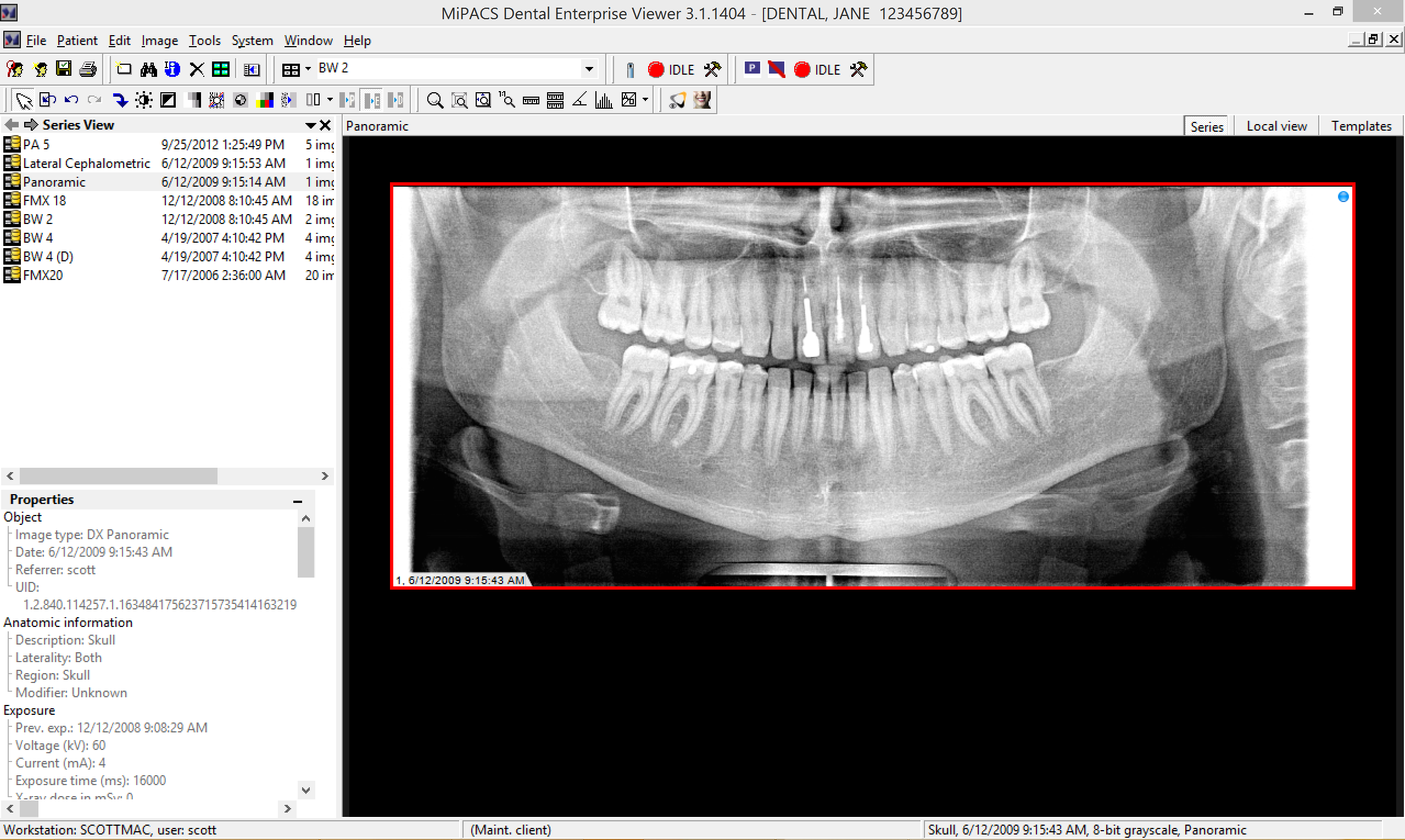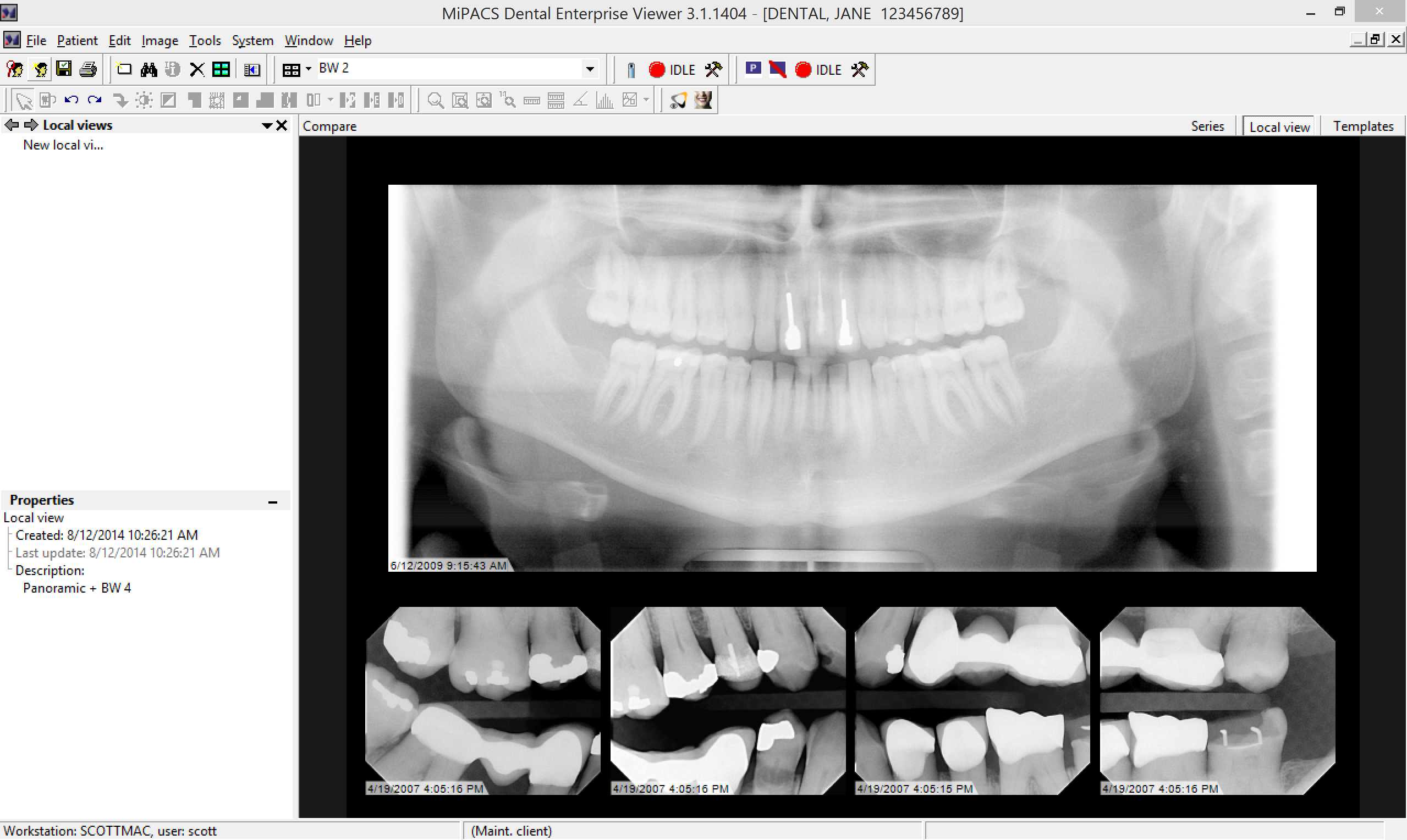 The MiPACS Dental Enterprise Viewer, built upon a foundation of the LEADTOOLS Imaging SDK, supports virtually any image bit-depth and has many compression options. MiPACS supports 8-bit grayscale, 12-bit grayscale, 16-bit grayscale, monochrome 1, monochrome 2, 24-bit color, YCBR, RGB, signed, pixel by color, and pixel by plane images. MiPACS also supports JPEG Lossy, JPEG Lossless, JPEG 2000 Lossy, and JPEG 2000 Lossless compression.