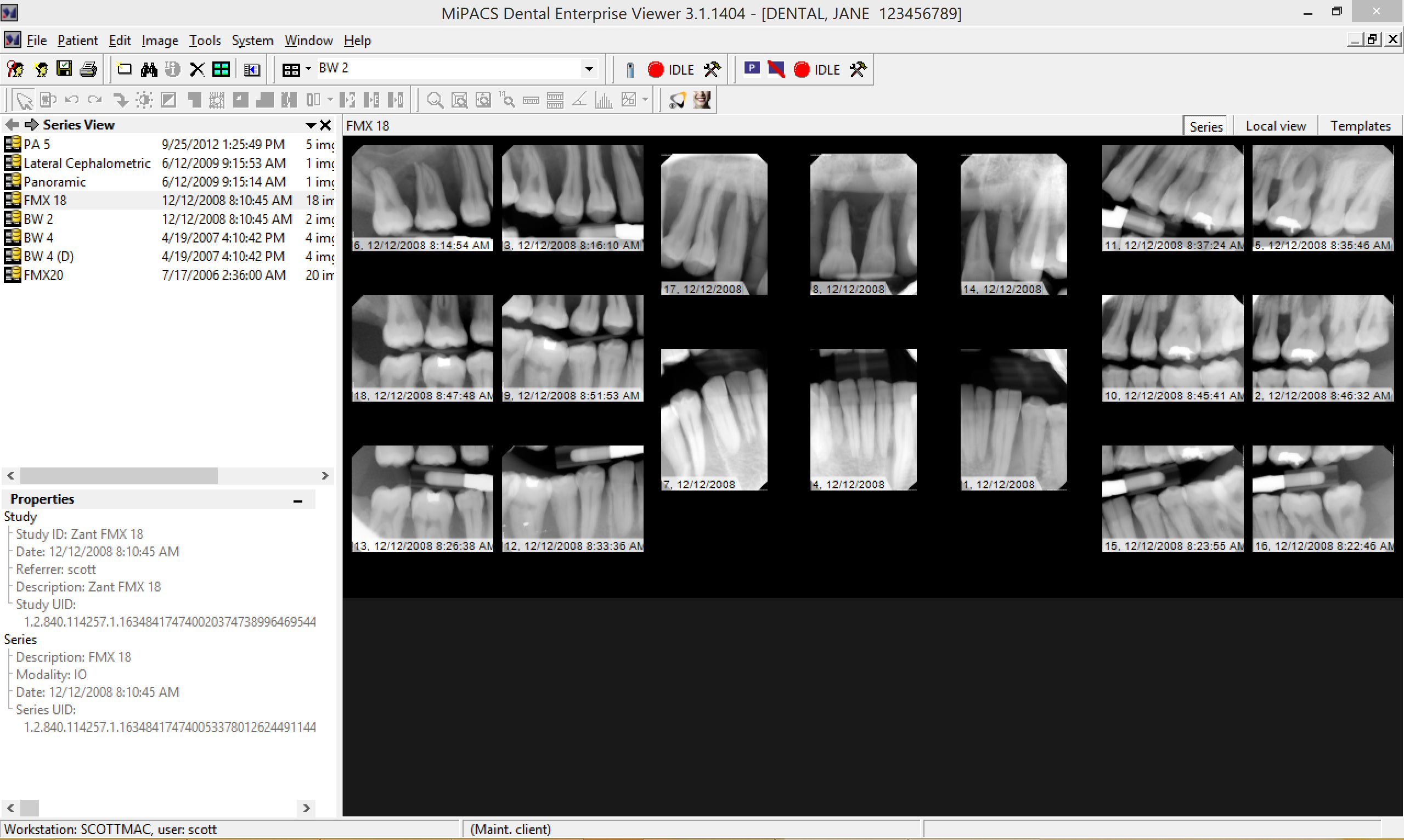 Within a large enterprise, abiding by industry standards is important. The MiPACS Dental Enterprise Viewer is fully DICOM 3.0 compliant. Images are stored 100% of the time in the DICOM format, and stored via DICOM communication to the MiPACS Storage Server or to any other PACS Server. MiPACS also has the capability to query for patient demographics and ordered procedures from a DICOM Modality Worklist.