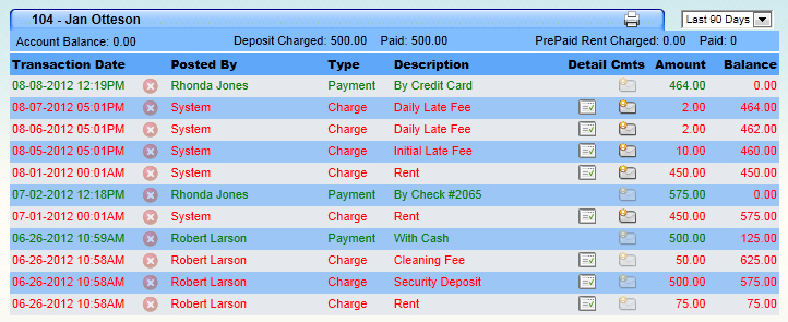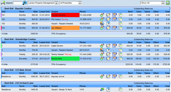 The heart of our software is the Rent Roll page, which means entering tenant payments, emailing statements and documents, viewing tenant notes, highlighting any tenant for tracking purposes, moving tenants in or out, and printing daily bank deposit slips are only clicks away.