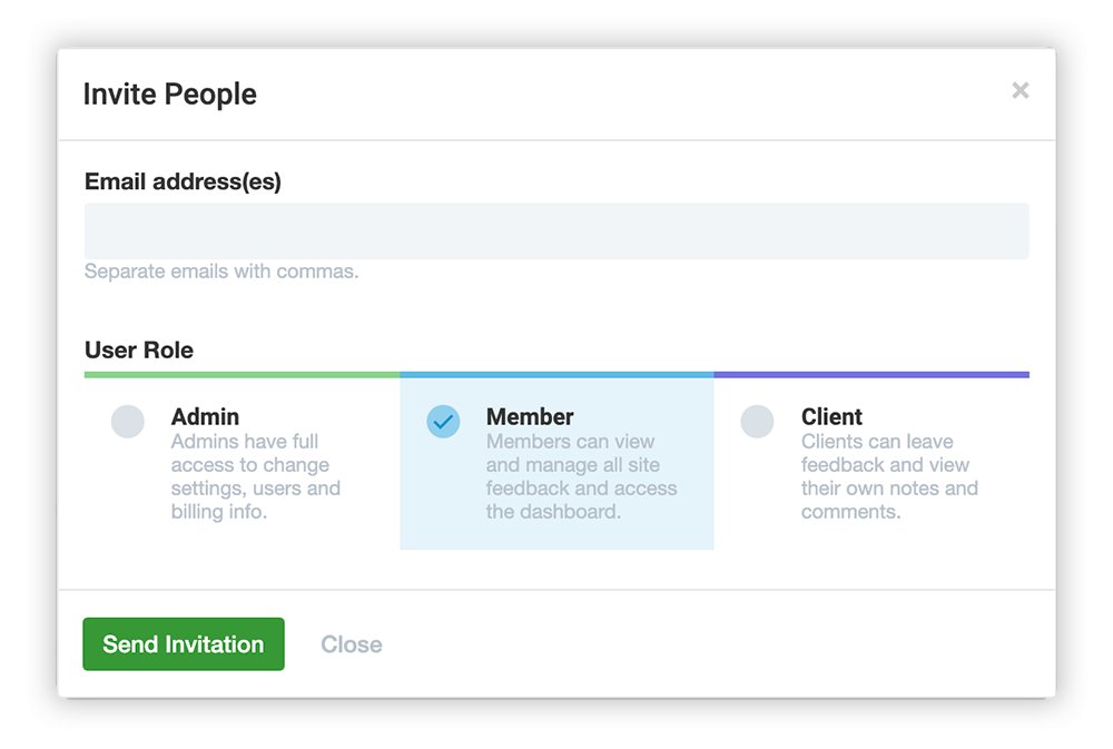 You decide who can see PageProofer on your website, everyone or only invited users. Easily set user permissions to control who can see what. You can even lock notes and comments so only Admins and Members can read them.
