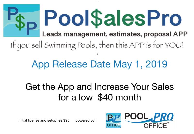 PoolServicePro App is a stand-alone app developed by Pool Pro Office the pool industry’s oldest and premier software for pool builders and service companies.