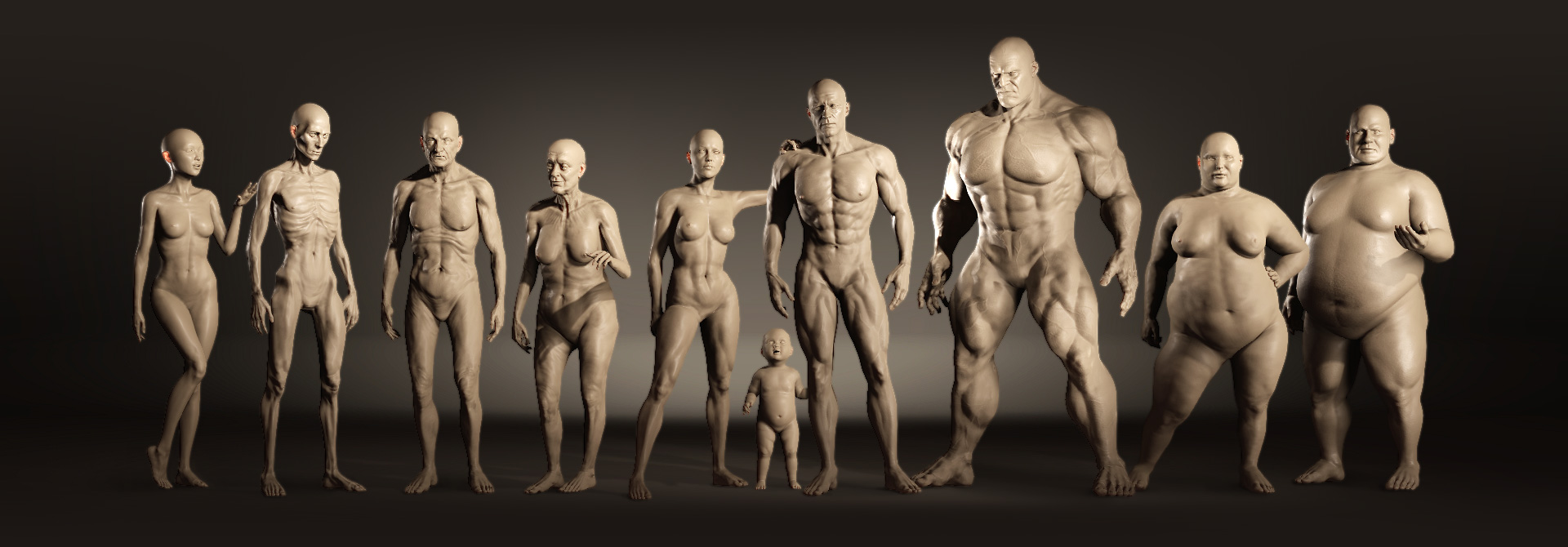 Customize believable human characters by using 300 basic embedded morphs, or extend to the full collection of Human Anatomy Morphs. The separated head and body morph designs provide the highest flexibility to blend with other CC characters. Users can also combine with Headshot, the photo to 3D head generator for digital double creations.