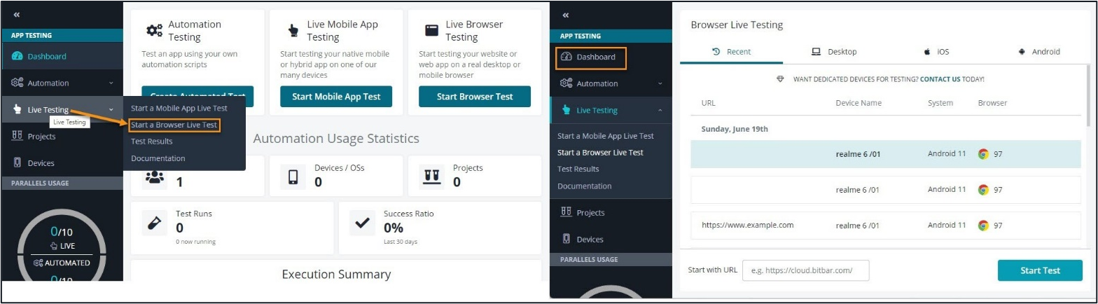BitBar is a flexible cloud-based mobile and web application testing platform that allows you to perform live (manual) manual app testing or automated testing in any framework against desktop browsers (Windows, macOS, and Linux) and real iOS and Android devices.
