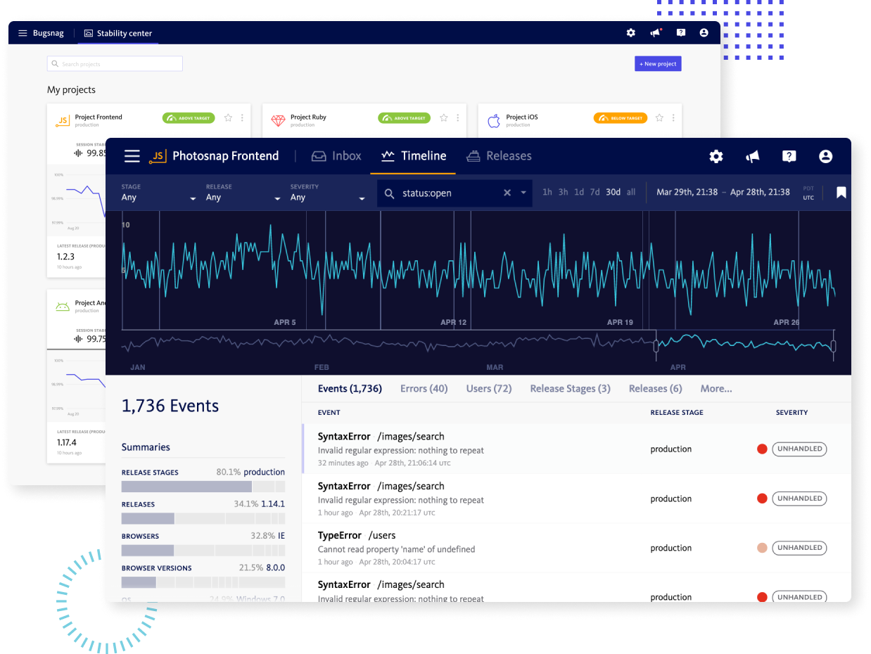 BugSnag was SmartBear’s first foray into the modern, developer-focused observability space. BugSnag gives developers key insights into end users’ experiences with their production applications and enables these developers to collect information about errors, app crashes, and core performance issues.