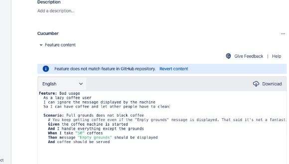 Work with Gherkin inside Jira. You’ll be able to use a native Gherkin feature file editor to collaborate with ease, along with being able to add comments, update your feature file with draft mode, and download in seconds.