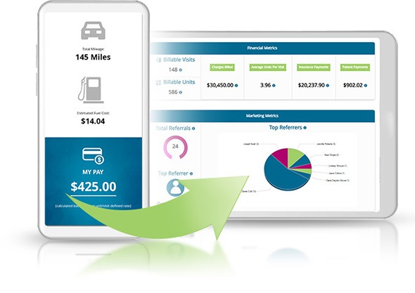 The StrataEMR Mobile Therapist solution delivers real-time driving data so therapists can effortlessly track their productivity, pay, mileage and estimate fuel costs throughout the day. Therapists love how much transparency and insight they now have to track their performance and enhance their productivity.