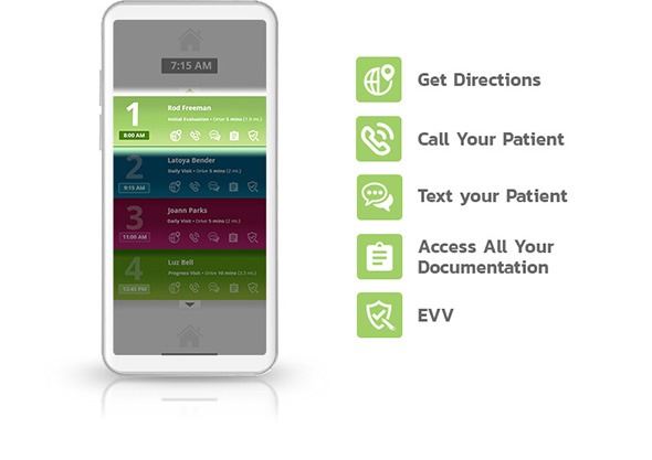 Using the StrataEMR Mobile Therapist one-click solution, therapists can quickly get appointment directions, call or text patients and access electronic visit verification (EVV) and clinical documentation all from a single click on their mobile device.