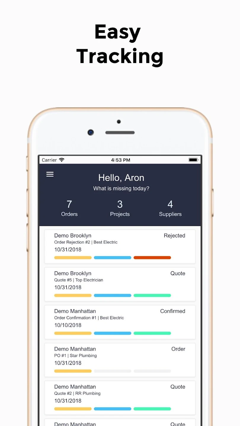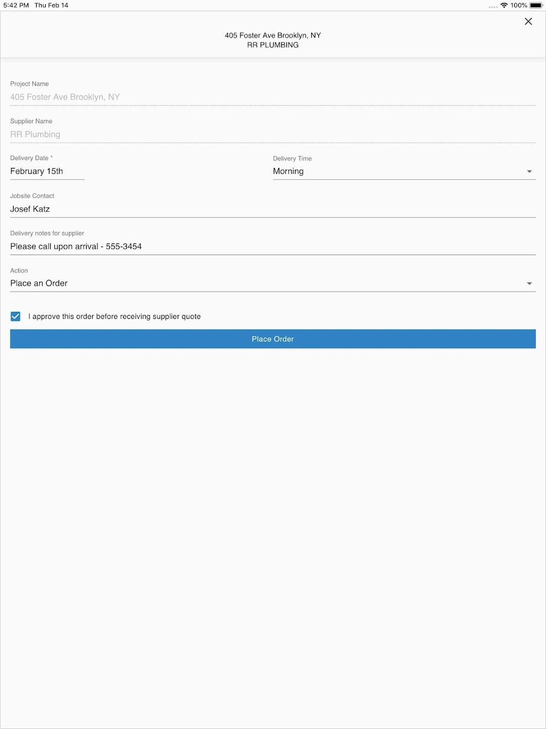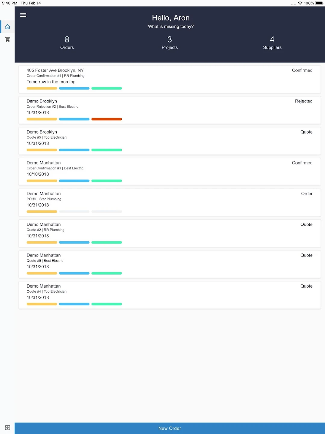 Submit material requests, set up delivery and track status with the Foreman via mobile app.