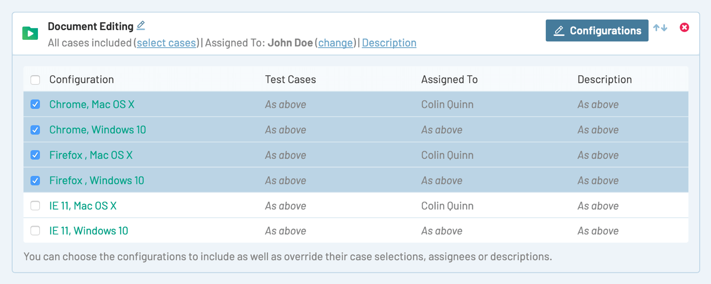 Easily start test runs and select test cases based on powerful filters.