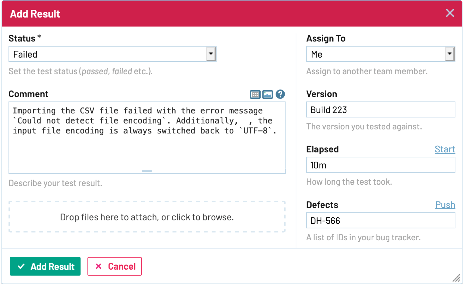 Measure your test times, track versions, link to defects and include attachments — entering test results has never been easier.