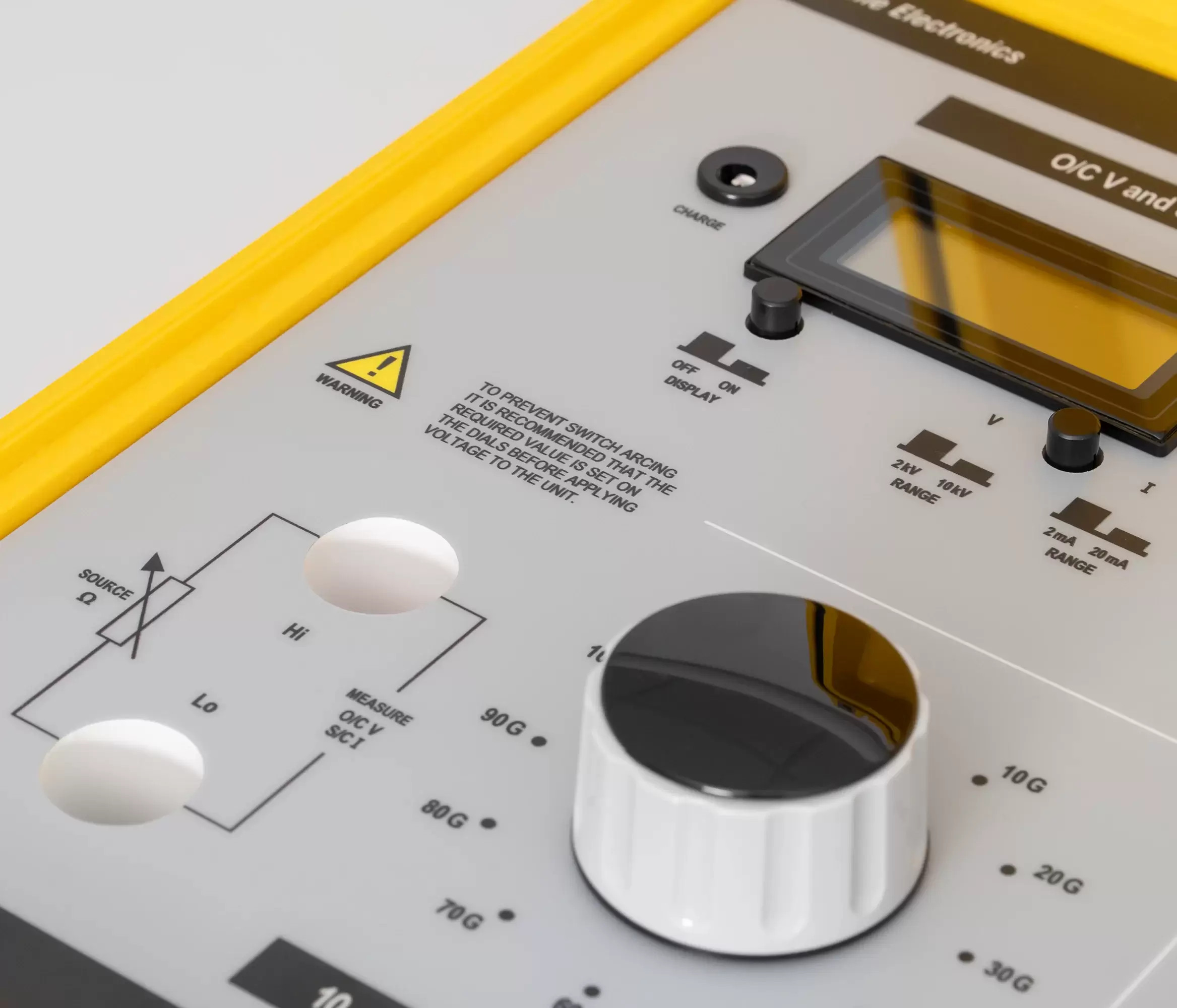 The insulation tester being calibrated can be tested for open circuit voltage and short circuit current. These are displayed on the digital meter mounted on the front panel. The insulation resistance is provided by a precision 4 dial decade resistance bank which can be set to a maximum of 99.99 GΩ with additional resistance values of 100 kΩ, 200 kΩ, 500 kΩ, 1 MΩ, 2 MΩ and 5 MΩ which can be switched in as required.