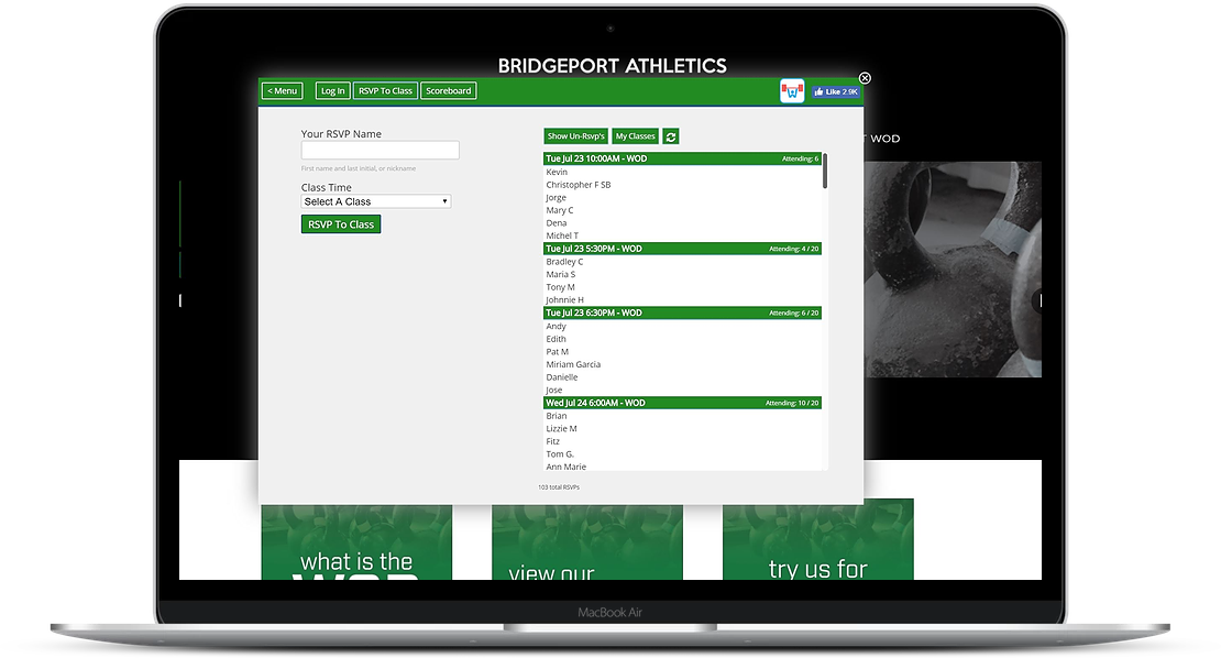 WODHOPPER will integrate seamlessly with your website to provide you and your athletes with the power of WODHOPPER, right from your home page. With social media integration, we direct traffic to your site and your brand, promoting the growth of your gym.
