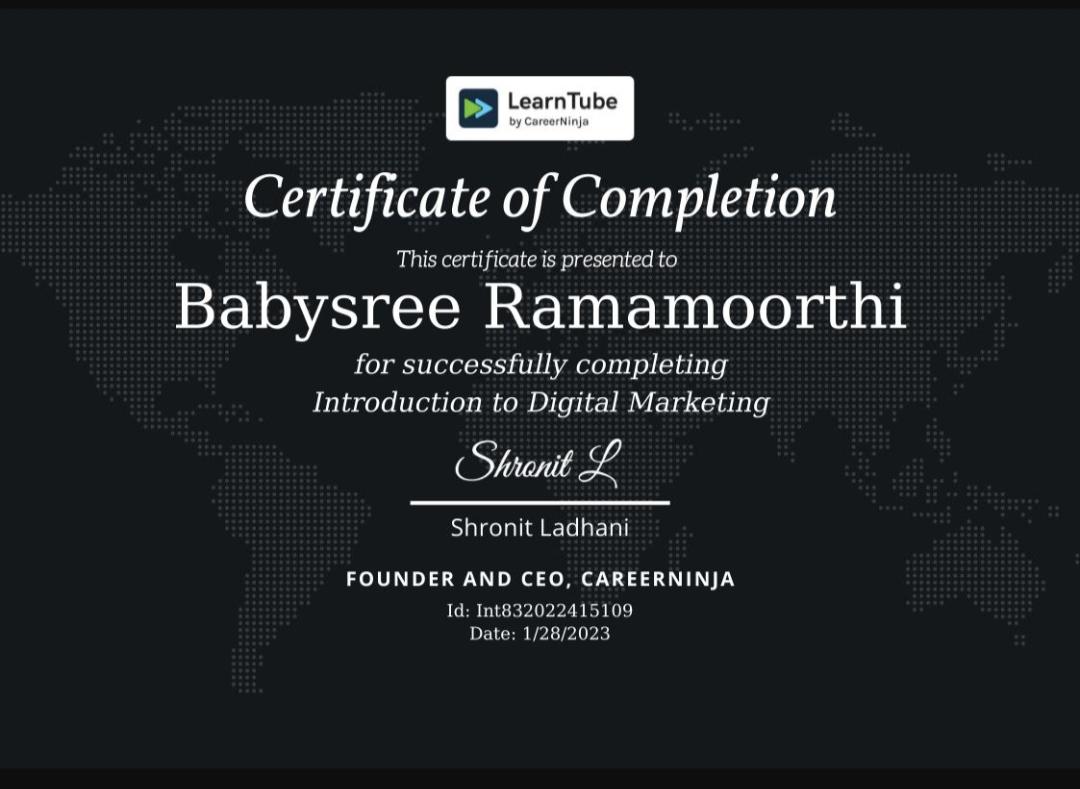 While this has been a strong foundational journey, I am now focused on growing further as an aspiring Digital Marketer, with a keen interest in SEO, content strategy, and data-driven marketing. I am continuously learning and adapting to new tools and trends to enhance my skills and deliver better results.